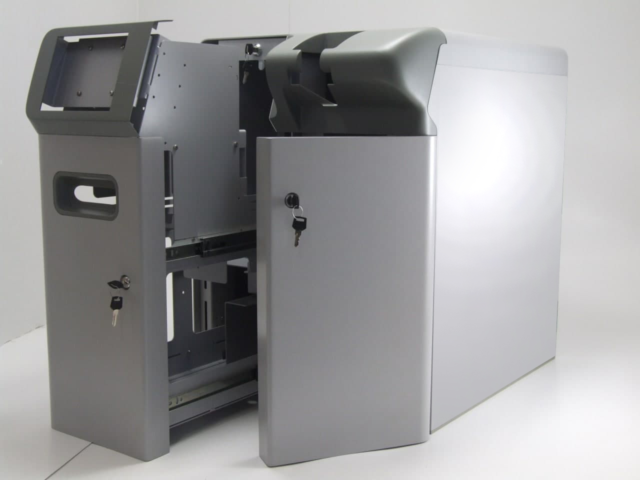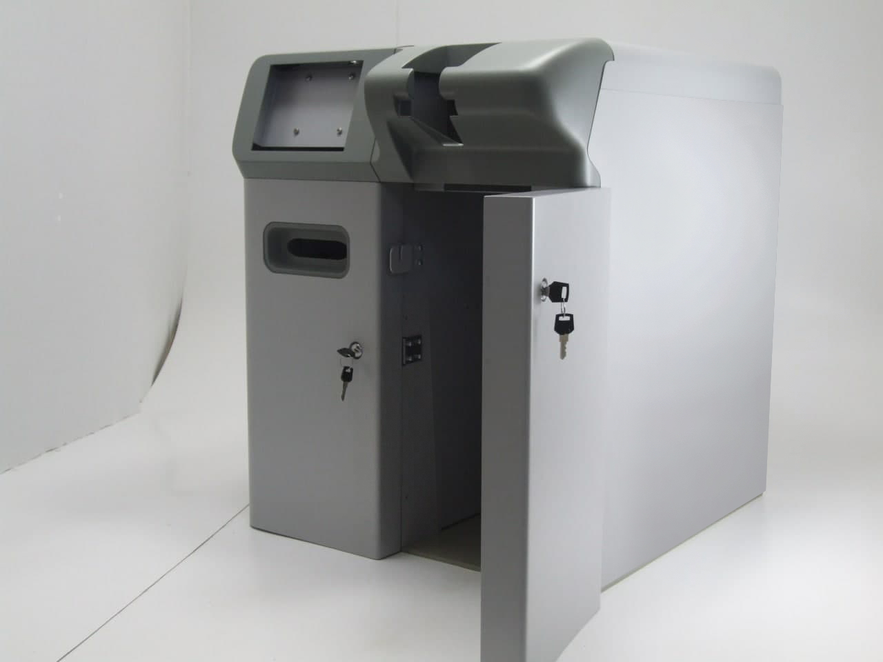 Нужен новый корпус депозитной машины. Это такой гибрид кассы и сейфа: кассир кладет в купюроприемник машины деньги, она их пересчитывает и сразу же зачисляет на указанный в её настройках расчетный счет юрлица. Потом из банка приезжают инкассаторы и забирают купюры.