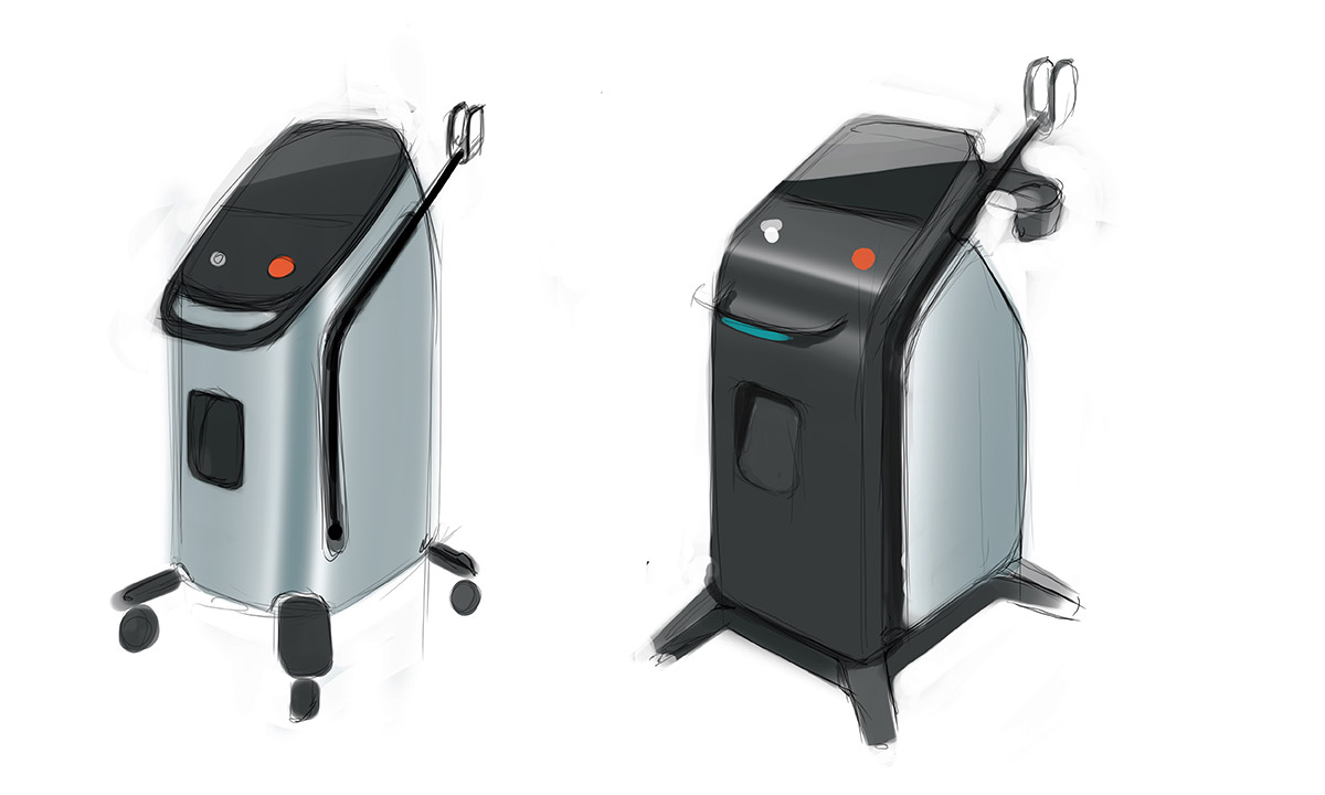 Работаем над новой моделью стационарного вертикального аппарата для лазерной эпиляции. Лазерный луч разрушает волосяные фолликулы — через три недели волос там, где не надо, у пациента не будет.