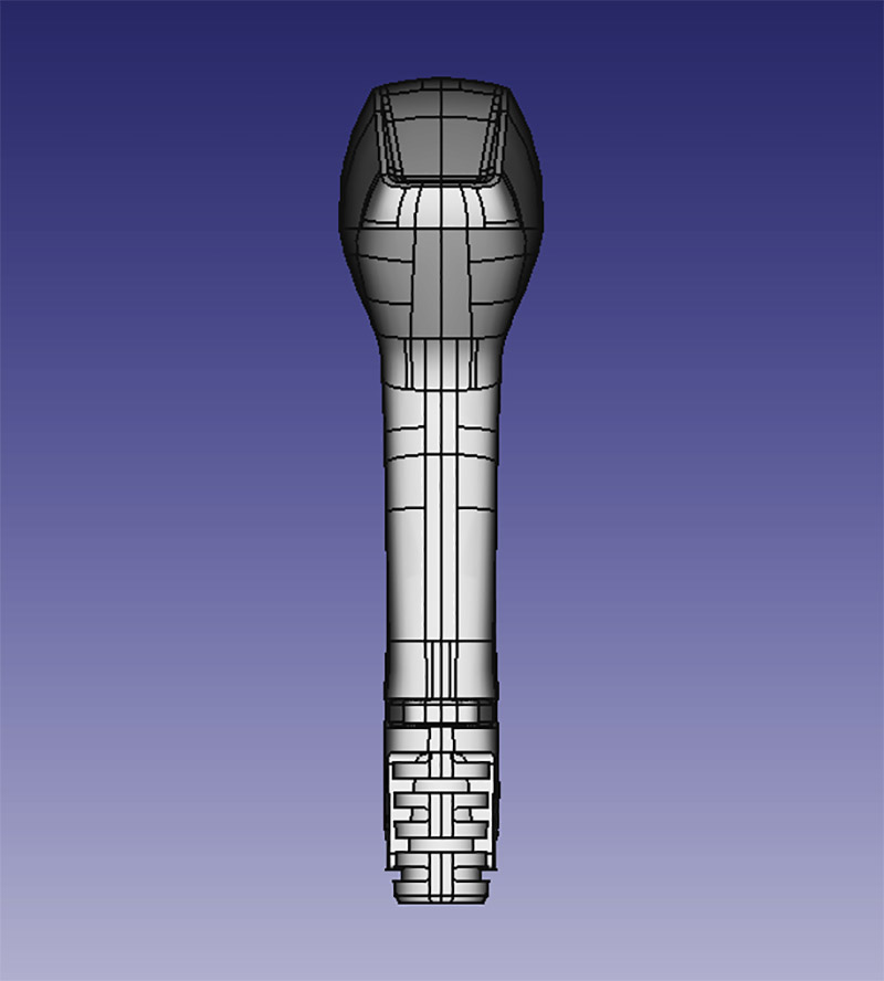 Ручка насадки — в том числе и с отверстиями под пальцы, чтобы оператору было удобно работать (эргономика у образца, на который ориентируемся при разработке, плохая — прибор легко может выскользнуть из рук):
