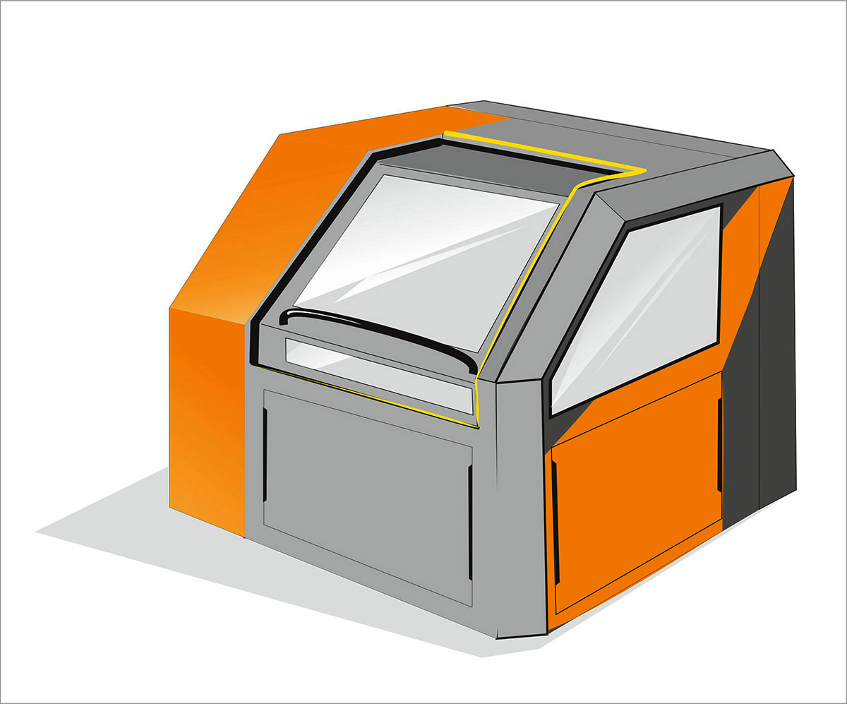 Дизайн, по сути, должен выполнять представительские функции — чтобы уже при первом взгляде на станок любому сразу становилось ясно, что такие устройства могут стоять только на продвинутых производствах. Цветовая гамма — светло-серая с чёрным и элементами оранжевого или жёлтого.