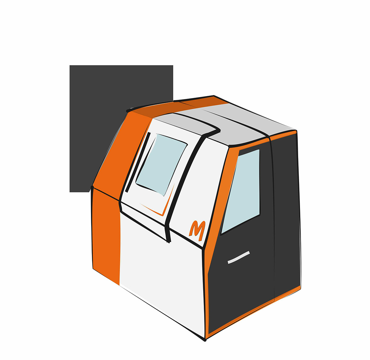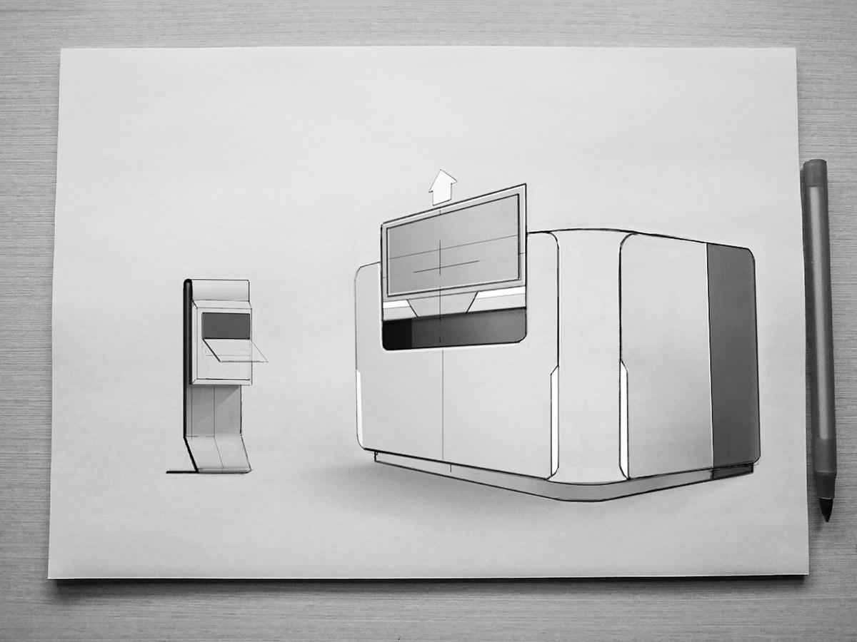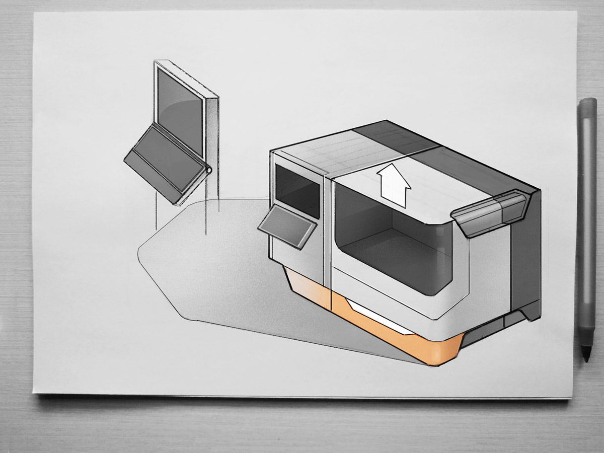 Что же касается дверей для доступа к рабочей камере, то их не будет. Нужна одна большая сдвижная дверь, смещённая в правую сторону. А на место, которое освободится с противоположной стороны, можно установить монитор, например. В крайнем случае — разместить там логотип производителя.