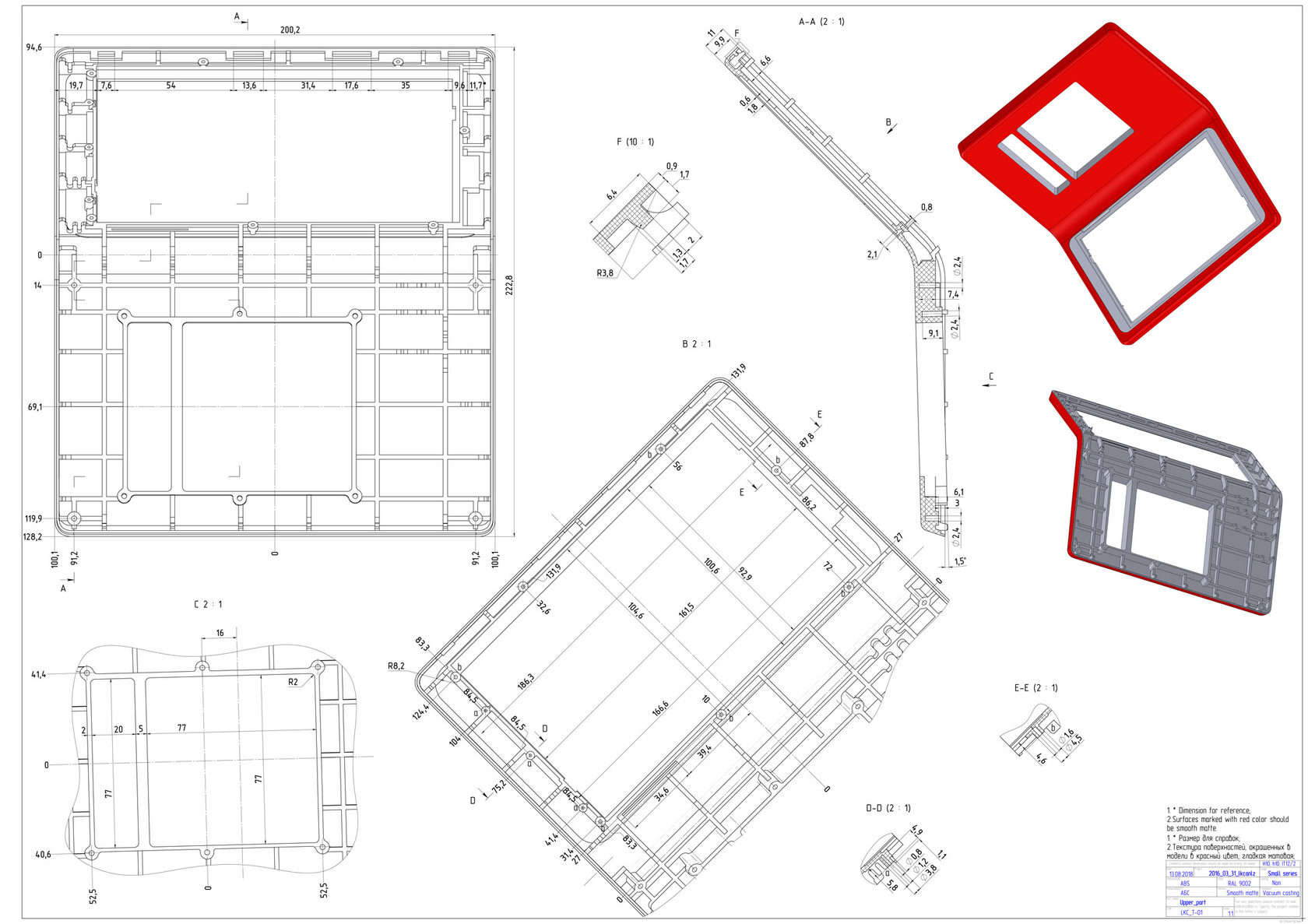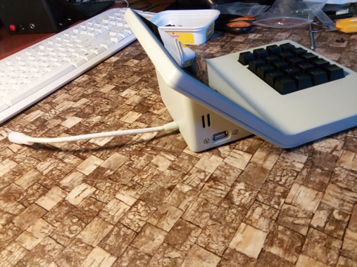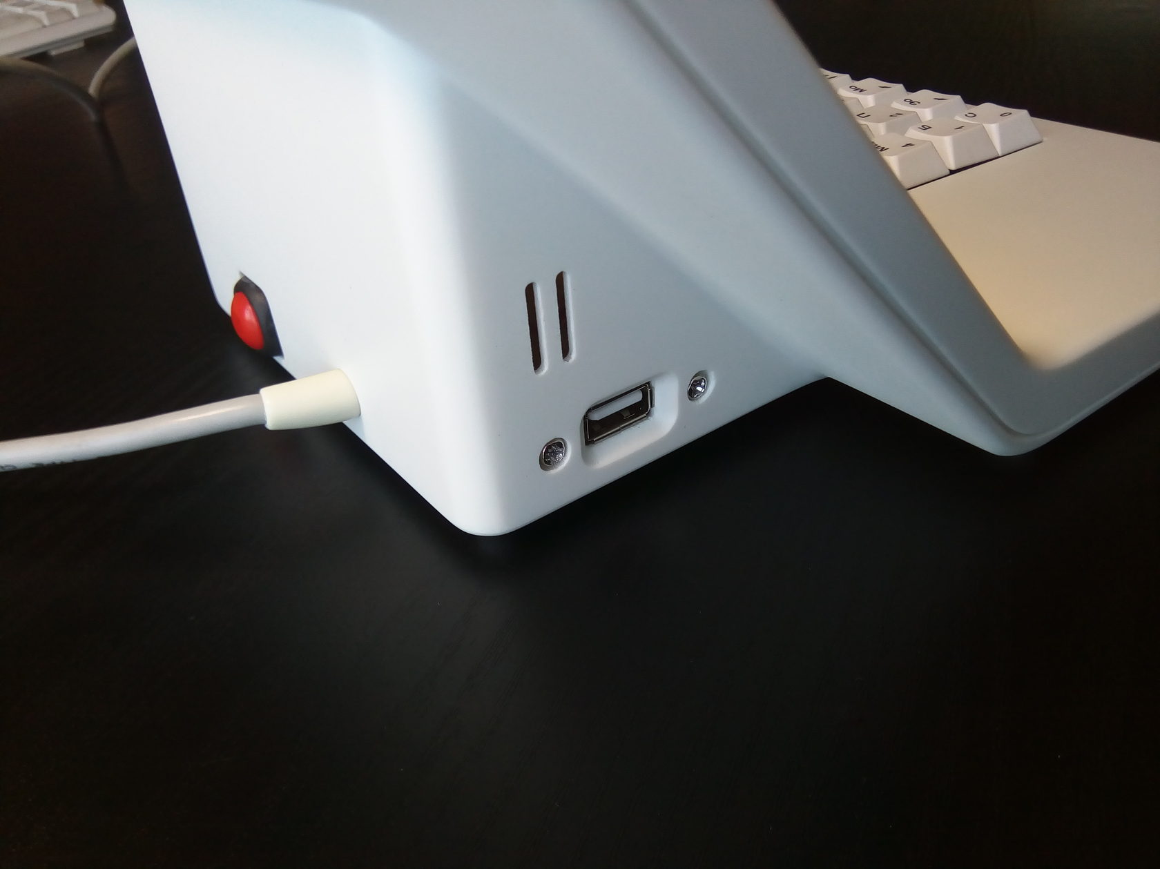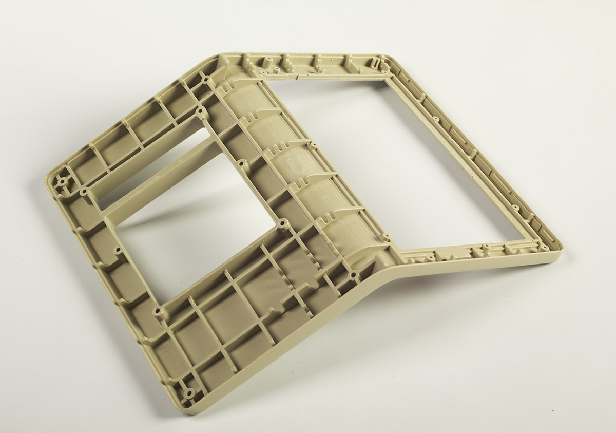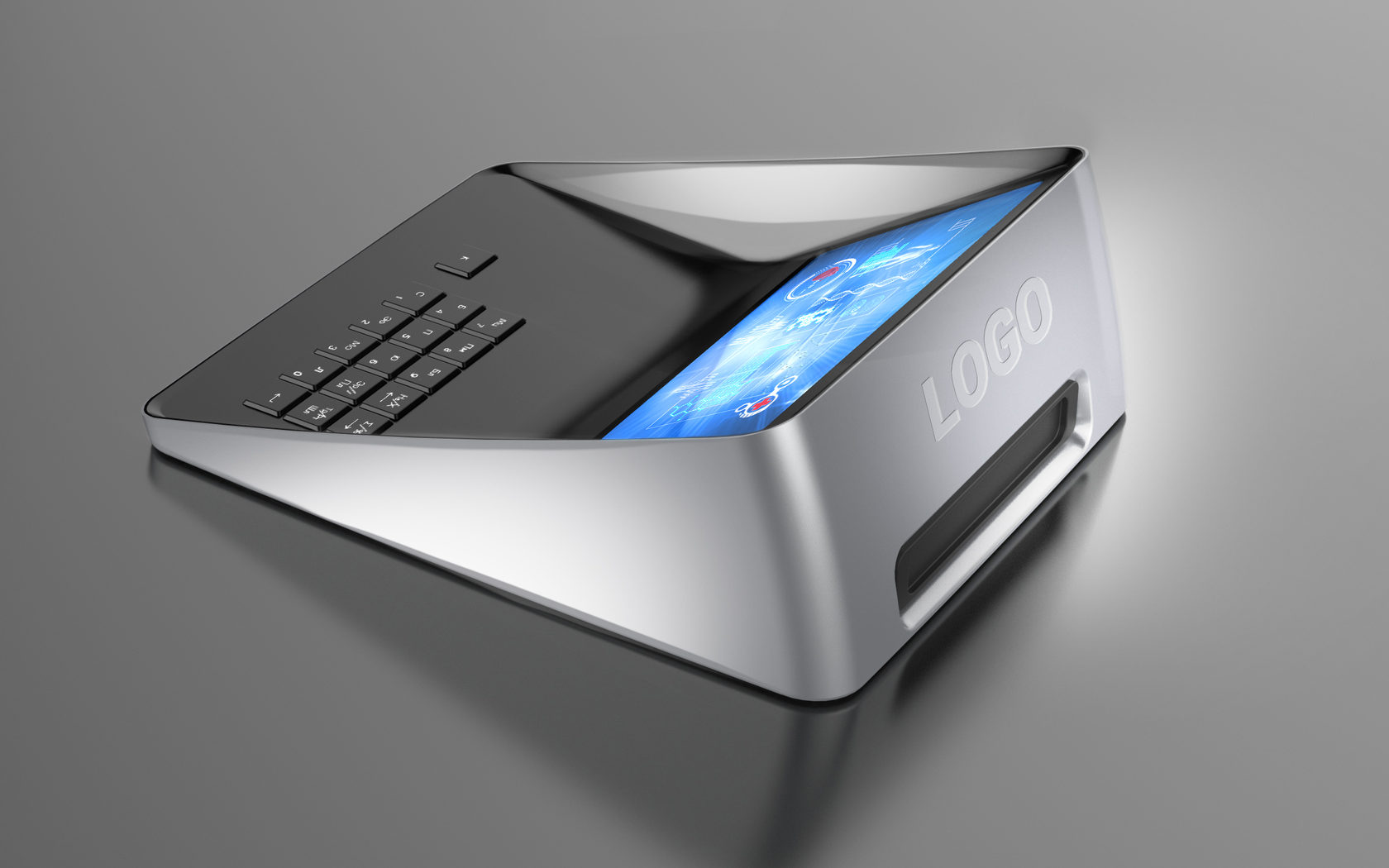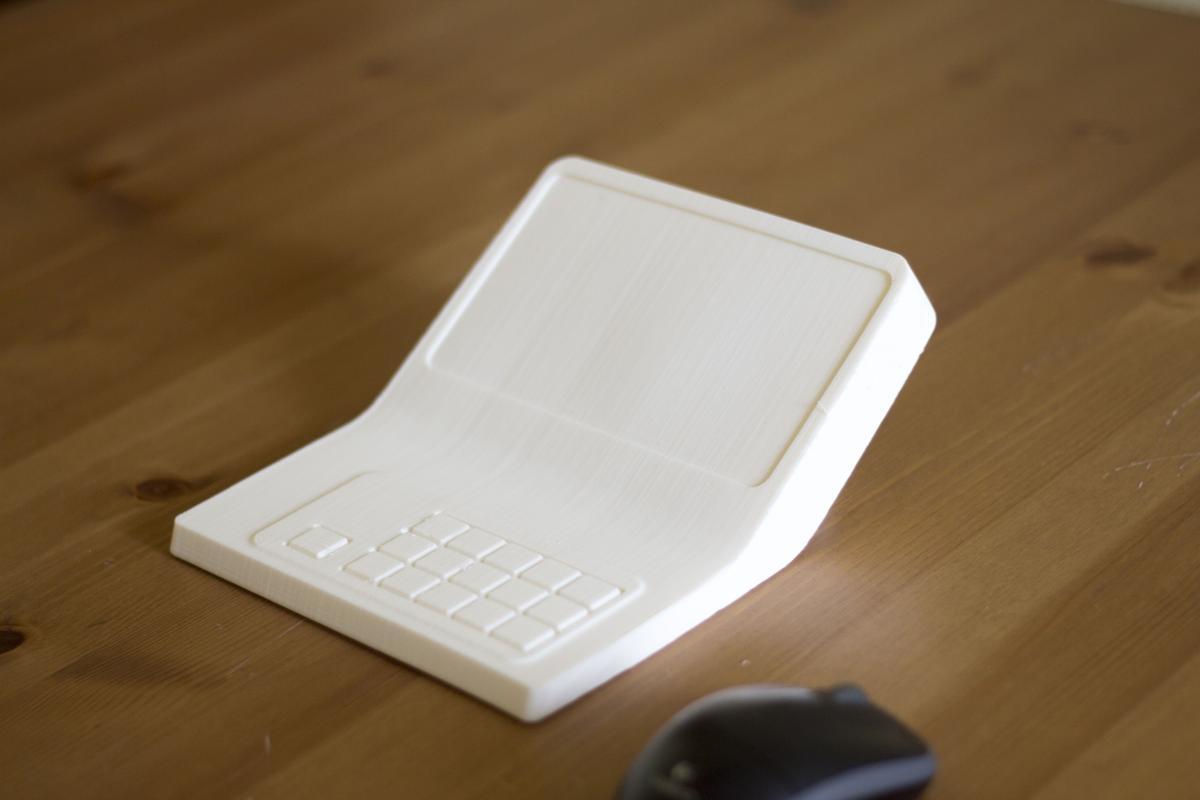 В новый корпус вместо дисплея ставится готовый планшет с диагональю дисплея 7 дюймов. Плюс модули Wi-Fi и USB, динамик, клавиатура (её нам нужно разработать или предложить готовое решение), плата. К ним — готовый блок питания. Корпус состоит из двух половинок, верхней и нижней. Желательно (насколько возможно) сохранить эргономику старой версии, — по крайней мере, высоту клавиатуры.