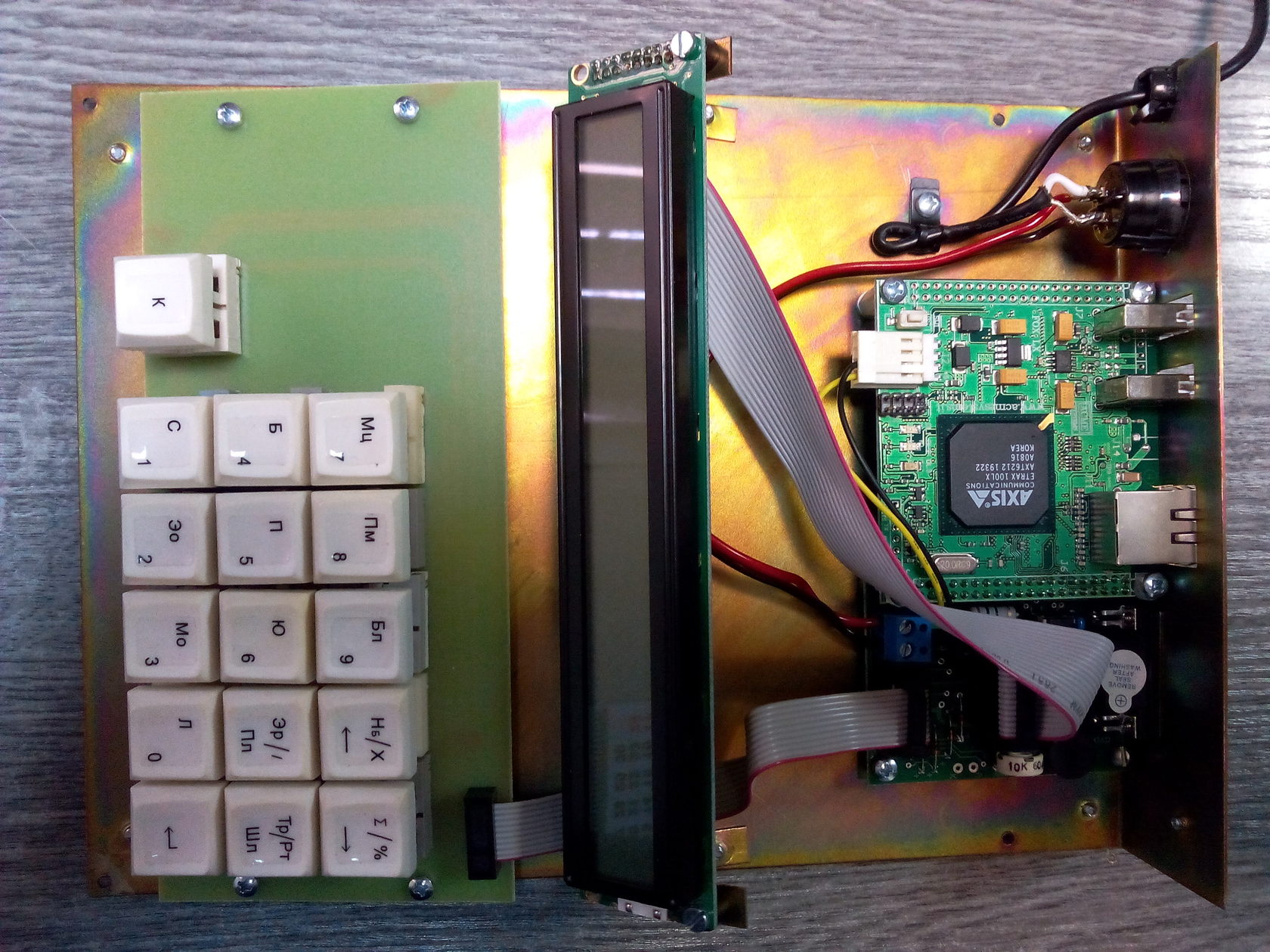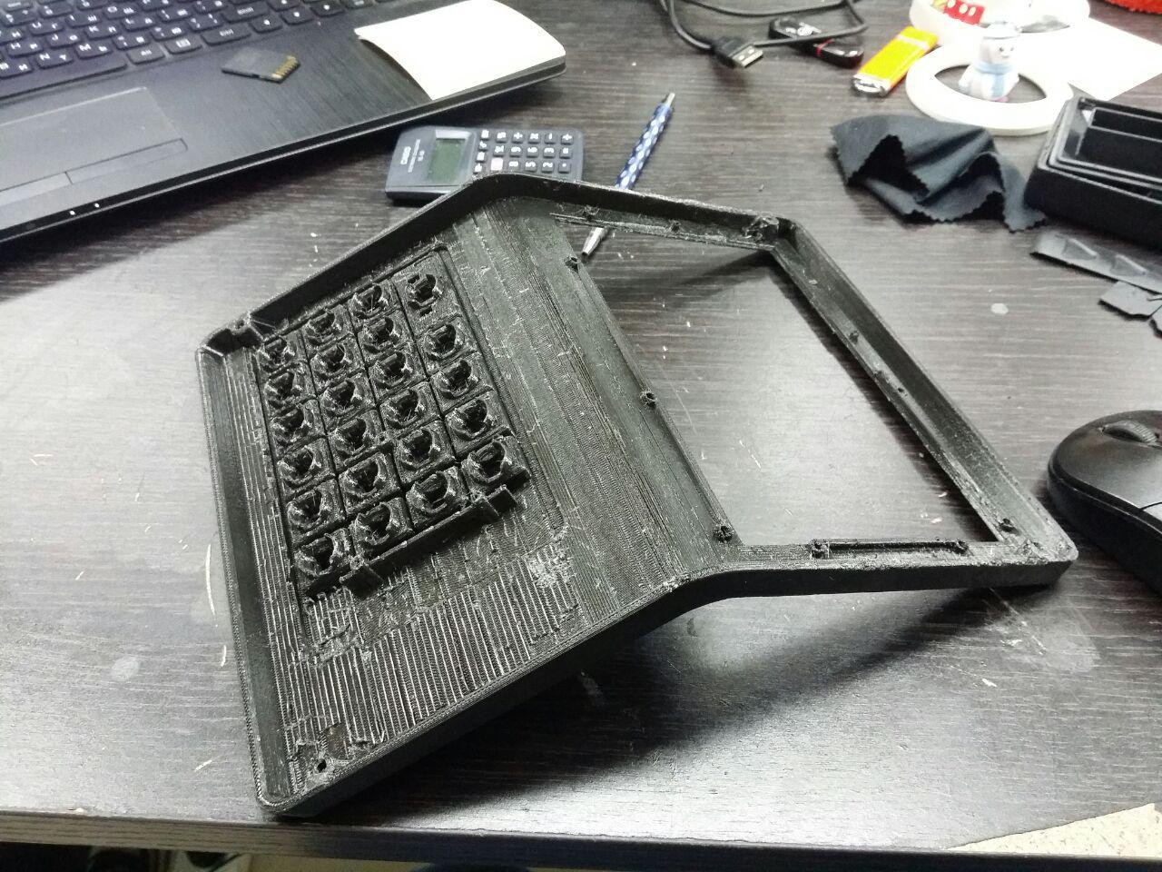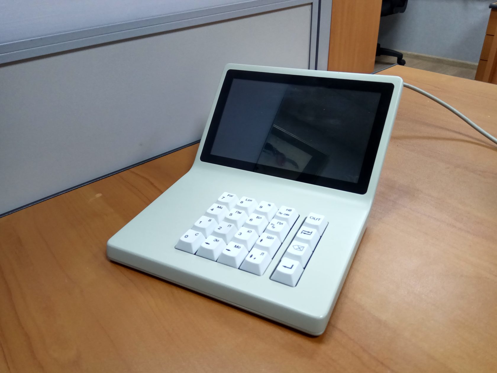 Например, мы сделали так, что кнопки клавиатуры «существовали» каждая по отдельности. Но оказалось, что это неудобно для оператора, и нужно было сделать их единым блоком. Тогда мы попытались было заложить в конструкцию покупную клавиатуру от NumPad, но в реальности оказалось, что свою сделать намного дешевле, проще и удобнее. Так в итоге и поступили.