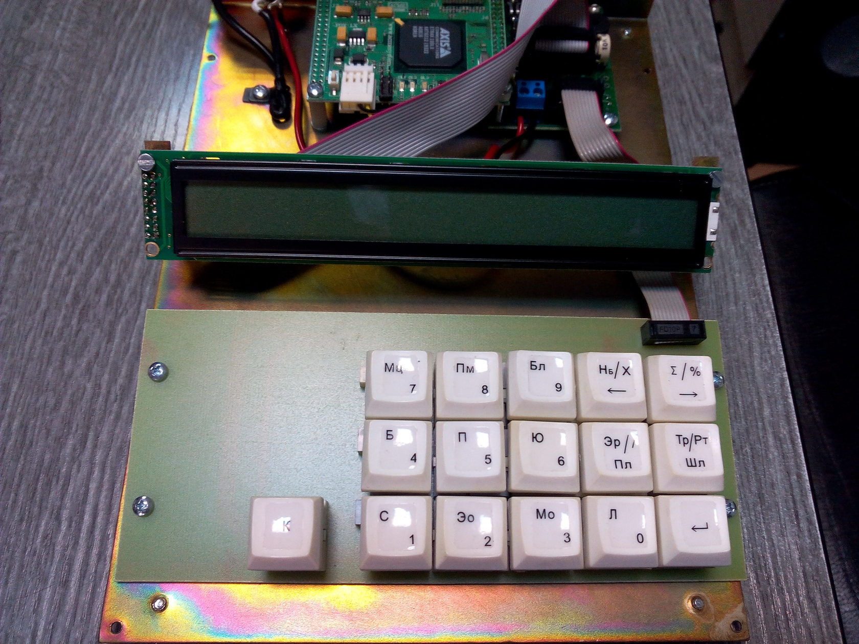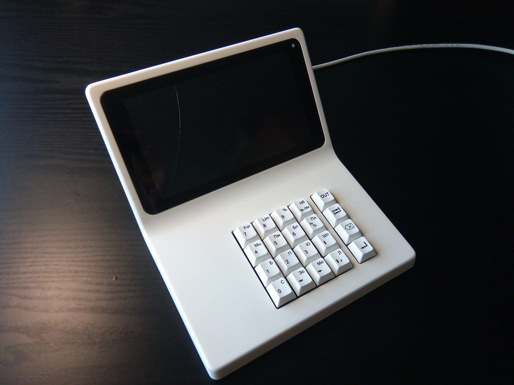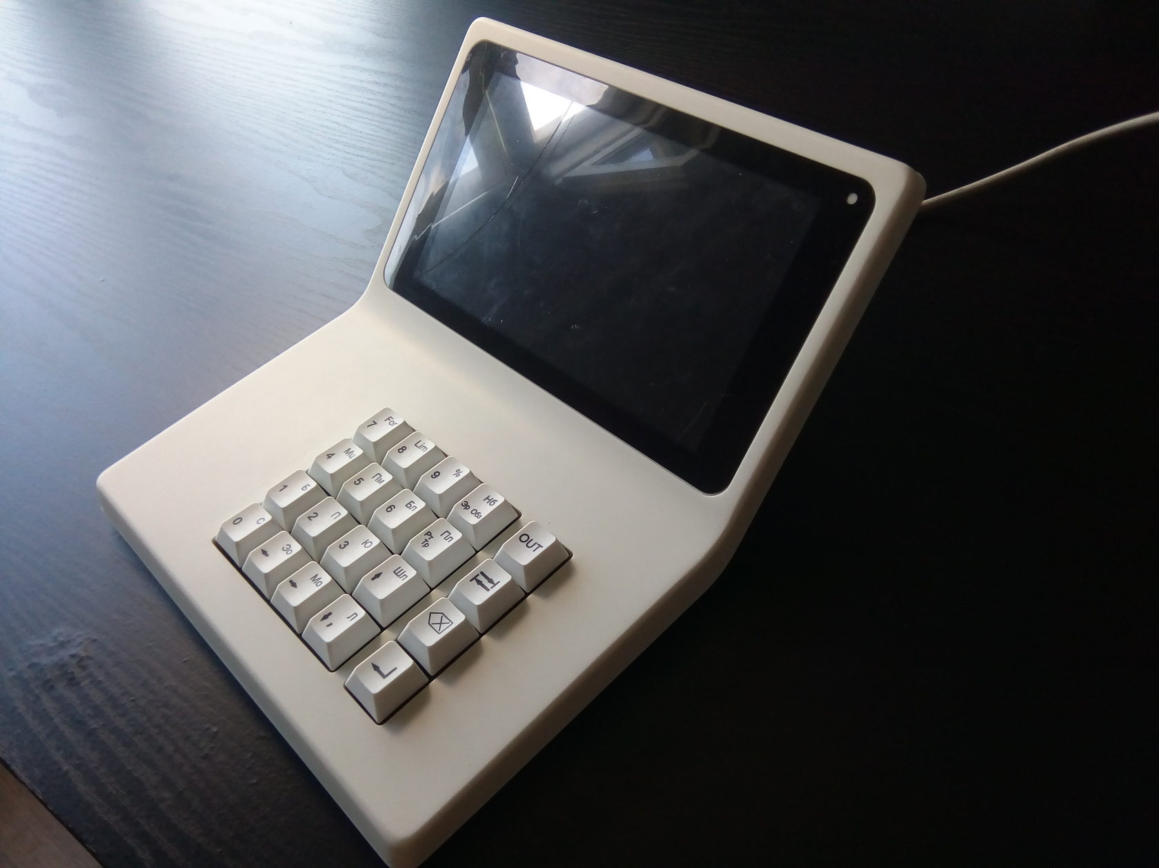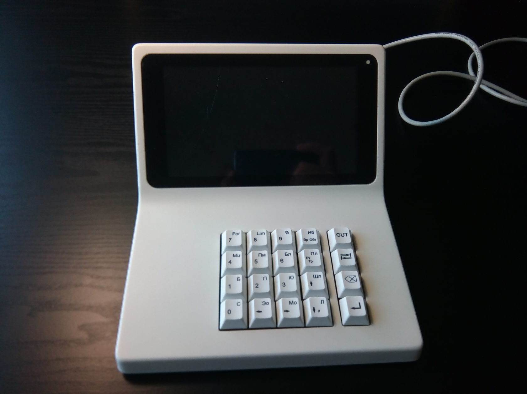 Например, мы сделали так, что кнопки клавиатуры «существовали» каждая по отдельности. Но оказалось, что это неудобно для оператора, и нужно было сделать их единым блоком. Тогда мы попытались было заложить в конструкцию покупную клавиатуру от NumPad, но в реальности оказалось, что свою сделать намного дешевле, проще и удобнее. Так в итоге и поступили.