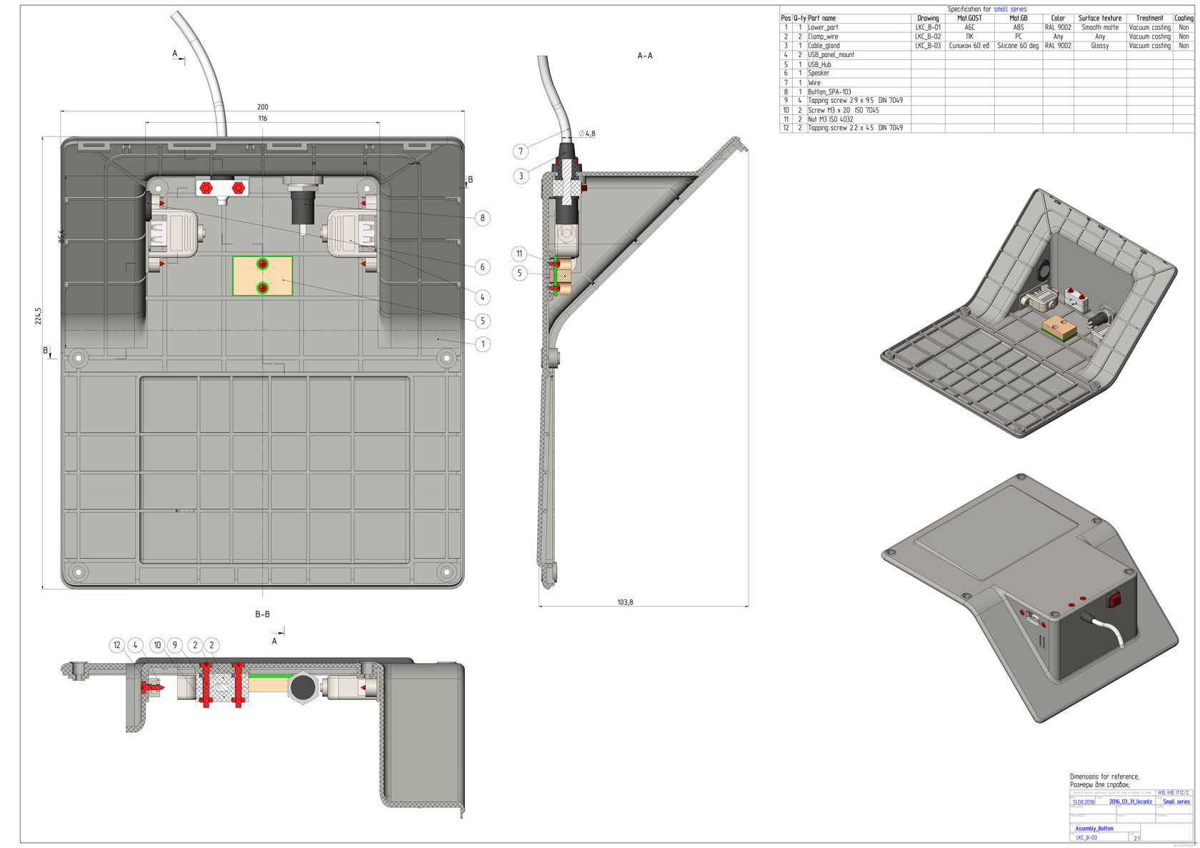 Перед серийным производством нужно внести изменения в конструкторскую документацию: доработать боковые разъёмы USB, заменить USB-хаб, доделать зазоры, исправить не совсем корректную работы платы и немного изменить надписи на кнопках. Последние изменения — это уже по желанию заказчика.