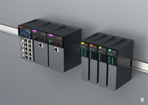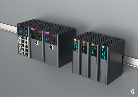 Задача — создать линейку корпусов для модулей станции удаленного ввода-вывода (СУВД) на DIN-рейку: промдизайн, эргономика, графика (значки и символы). Такие модули нужны для сбора данных с датчиков и управления исполнительными устройствами в системах промышленной автоматизации. Мы работаем над дизайном и эргономикой коммуникационного модуля, модуля ЦПУ (это центральный процессорный узел, «мозг» СУВД) и модулей аналогового и дискретного ввода-вывода, всего 6 штук в линейке. Все они собираются на DIN-рейке и соединяются жестким шлейфом.