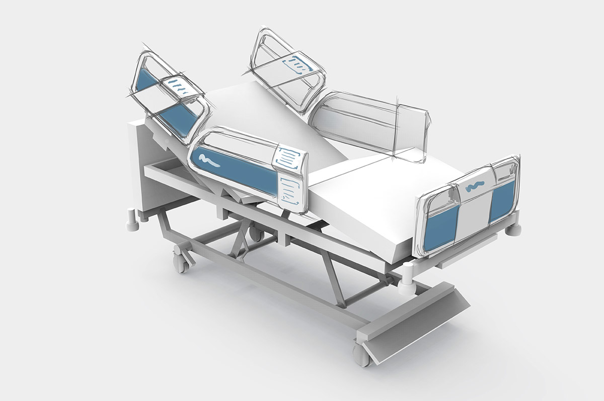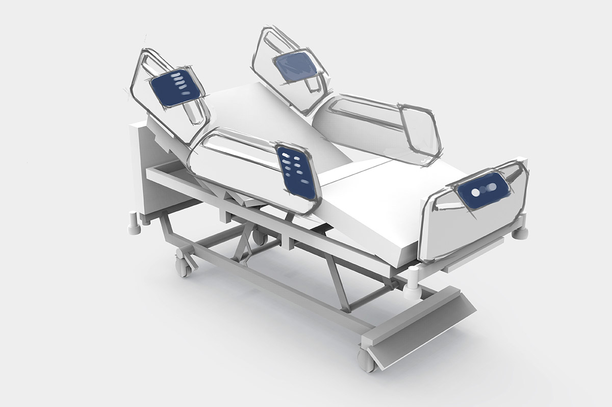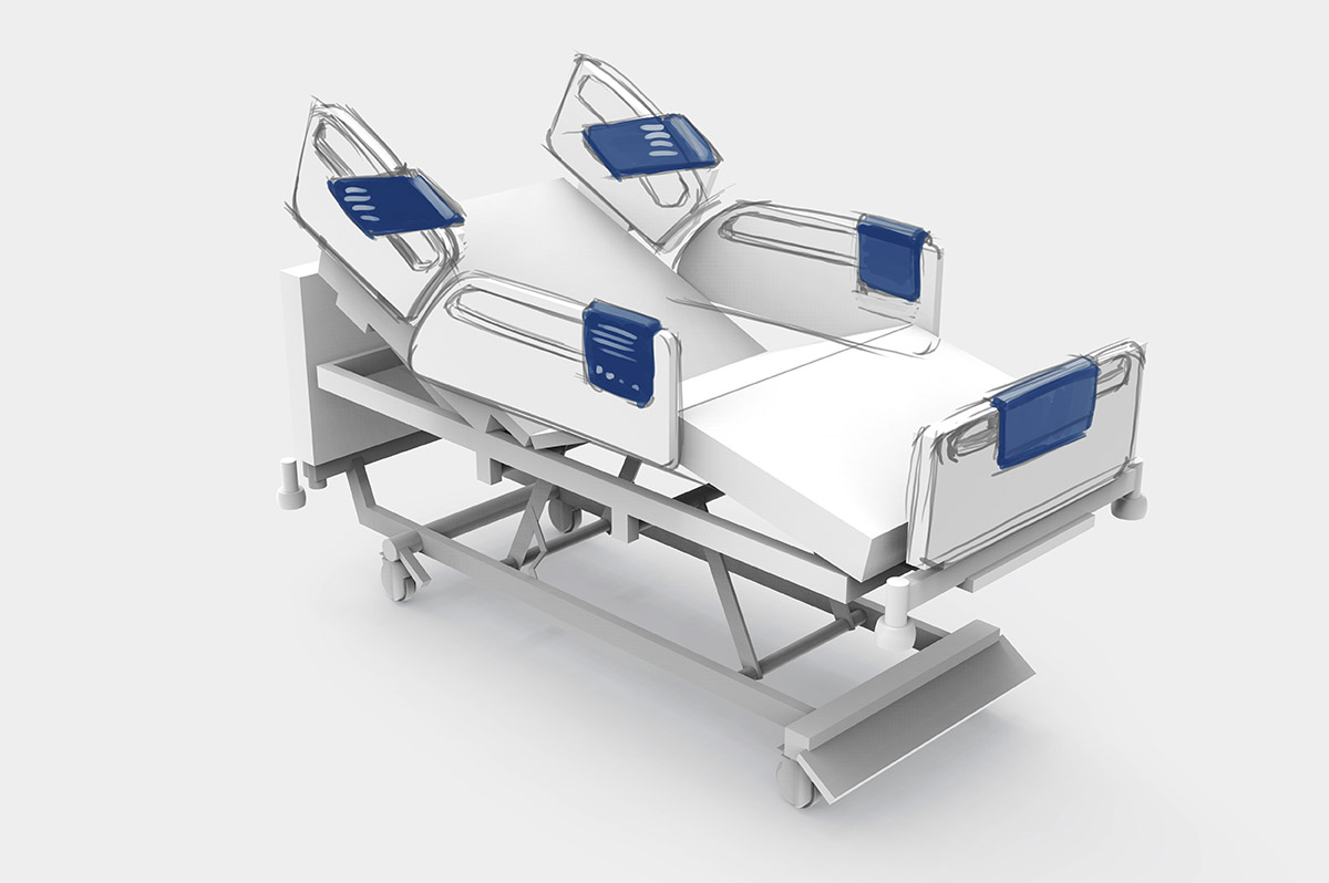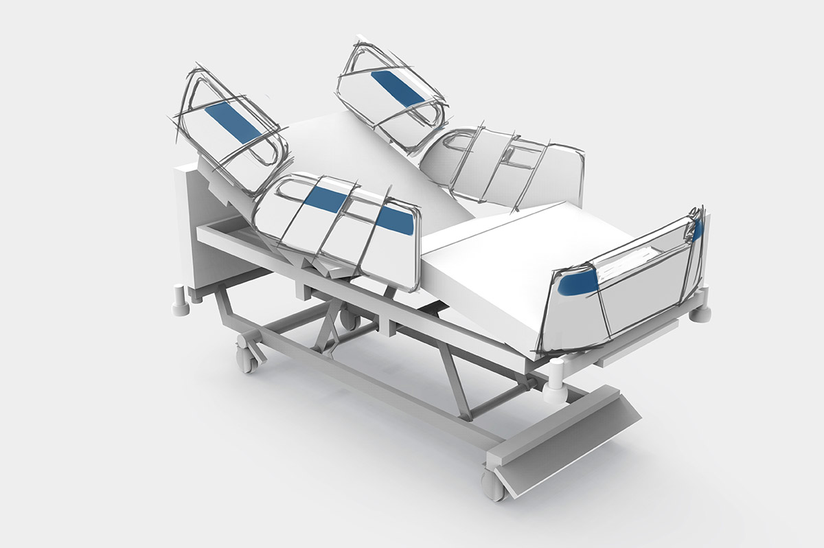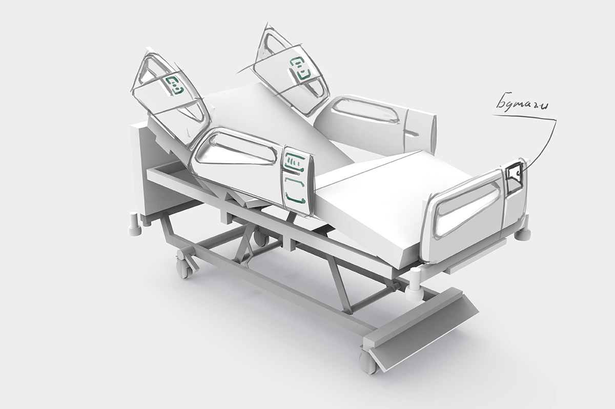 Разрабатываем дизайн и эргономику медицинской кровати. В качестве образца — модель зарубежного производителя.