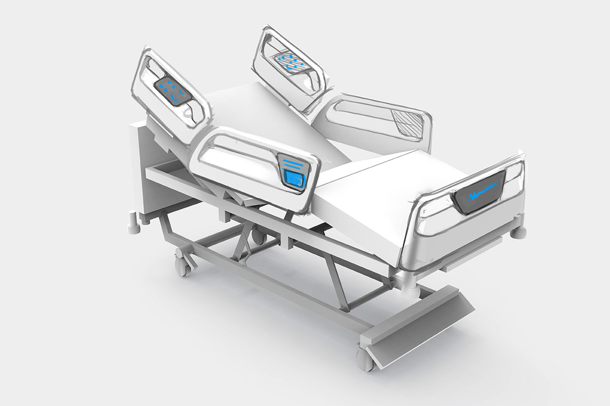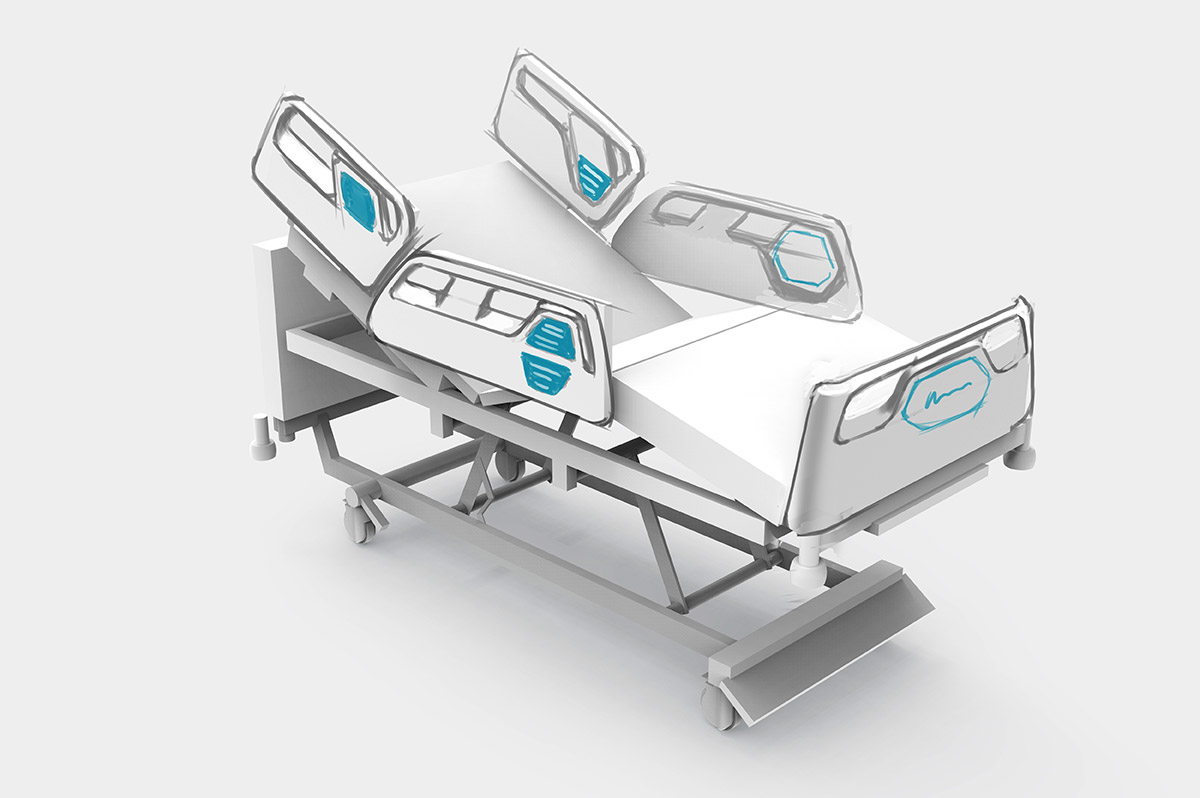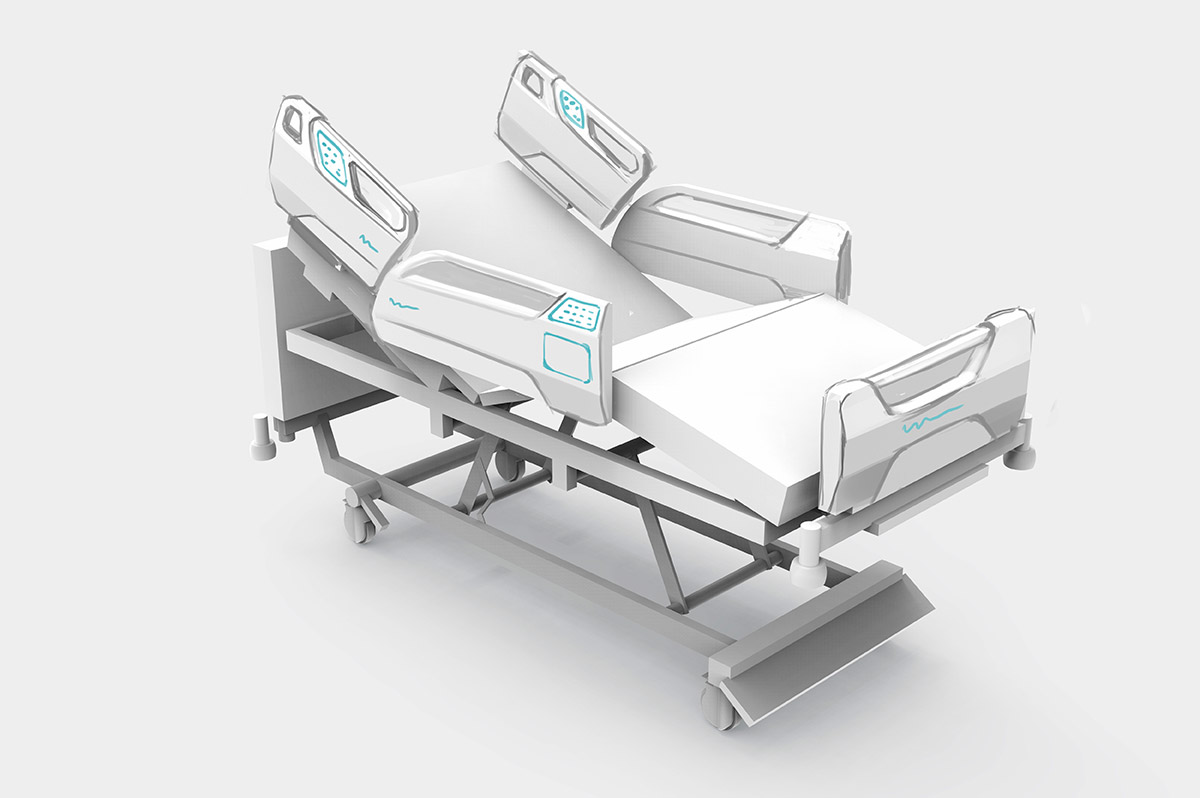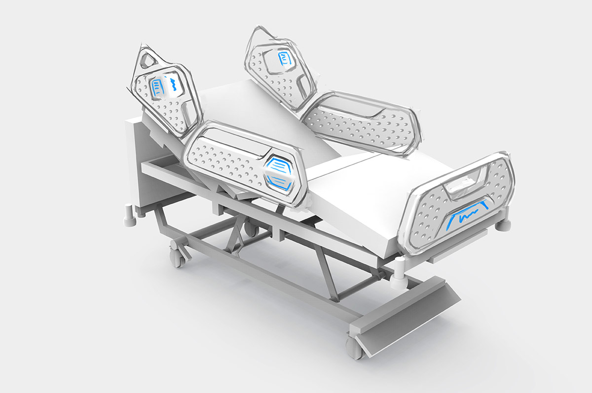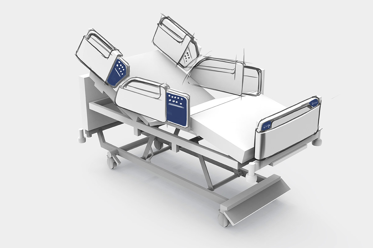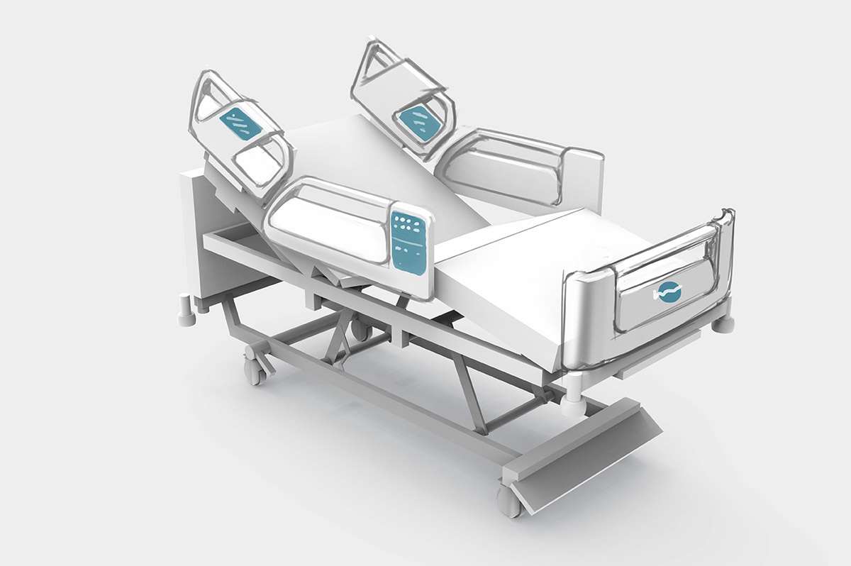 Разрабатываем дизайн и эргономику медицинской кровати. В качестве образца — модель зарубежного производителя.