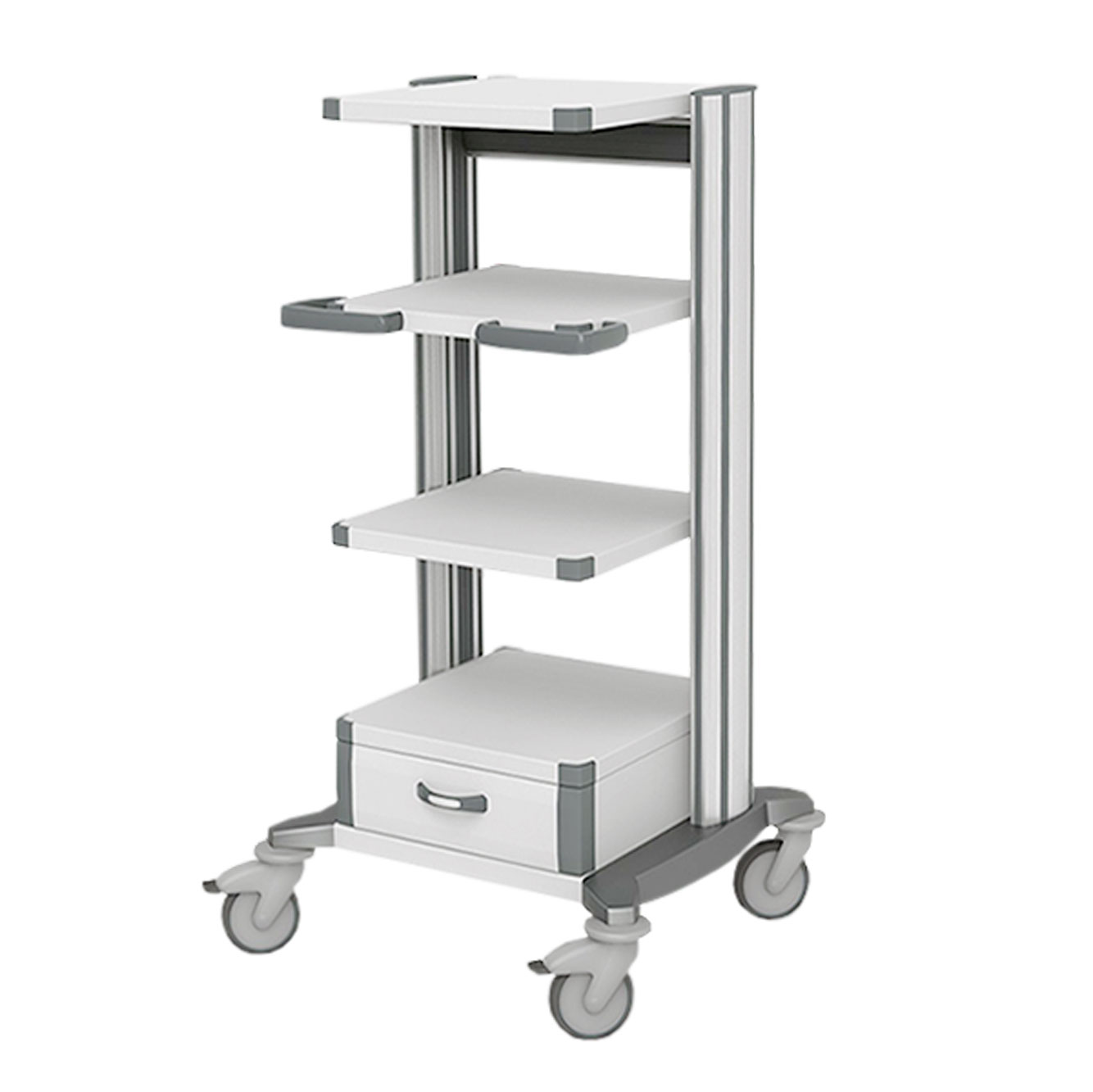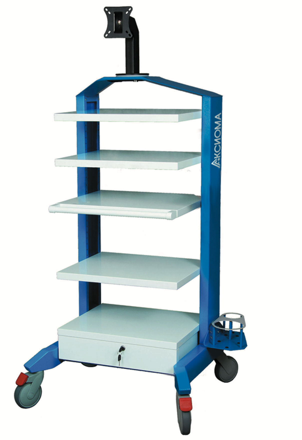 Нас ждёт обновление дизайна очень простой и одновременно сложной конструкции — металлической медицинской стойки. Простая она потому, что в её составе всего лишь пять полок и один ящик, рама, шасси с колёсами и два крепления — одно для монитора, другое — внешнее для медицинских ёмкостей.