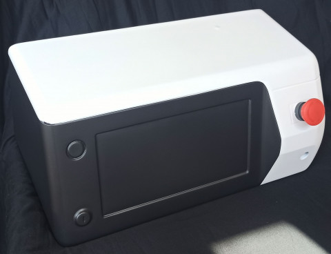 | Что нужно сделать? Задачи | 1. Корпус из пластика и металла, состоящего из 3 или 4 деталей, с ЖК-дисплеем. В составе прибора также — 4 блока питания, стандартный мини-компьютер, источники излучения: несколько лазерных диодов и один УФ-диод; два радиатора, вентиляторы охлаждения, кнопки питания, разнообразные разъемы. 2. Сборка на винтах. 3. Размеры корпуса заданы, уменьшать их нельзя. Хорошо бы утяжелить корпус. А еще ему необходимы ножки — для устойчивости. 4. Разборность для сервисного обслуживания, ремонтопригодность. 5. Панель с лазерными диодами — съемная. 6. Защиту внутреннего наполнения от брызг по стандарту IP30. 7. Нетоксичный материал. 8. Поверхность корпуса должна быть приятной на ощупь и легко переносить стерилизацию. 9. Дизайн, оправдывающий высокую стоимость прибора. Белый и серый цвета. 10. Места на корпусе для размещения названия компании-производителя, названия модели, логотипа производителя, подписей и знака лазерной безопасности. 11. Ограниченная себестоимость корпуса |