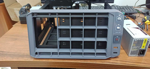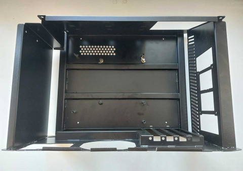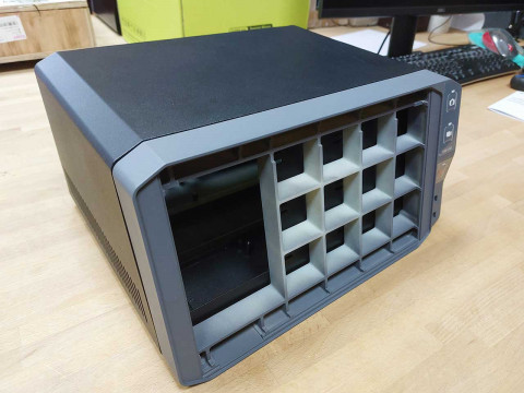Для корпуса рекордера потребуются два материала:основная часть будет из металла, лицевая панель — из пластика. Внутри — материнская плата с тремя платами расширения, блок питания, дисплей 11.6 дюймов, тачскрин и вентилятор охлаждения. На лицевой панели — экран с наклоном 15 градусов, кнопки управления, индикаторы и два порта USB.