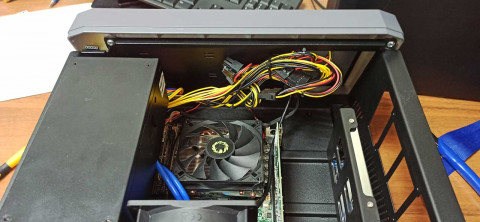На задней панели — разъемы матплаты, плат расширения и заземления, отверстия охлаждения блока питания.
