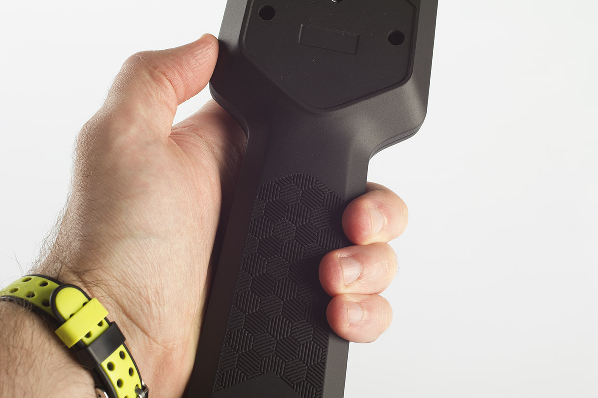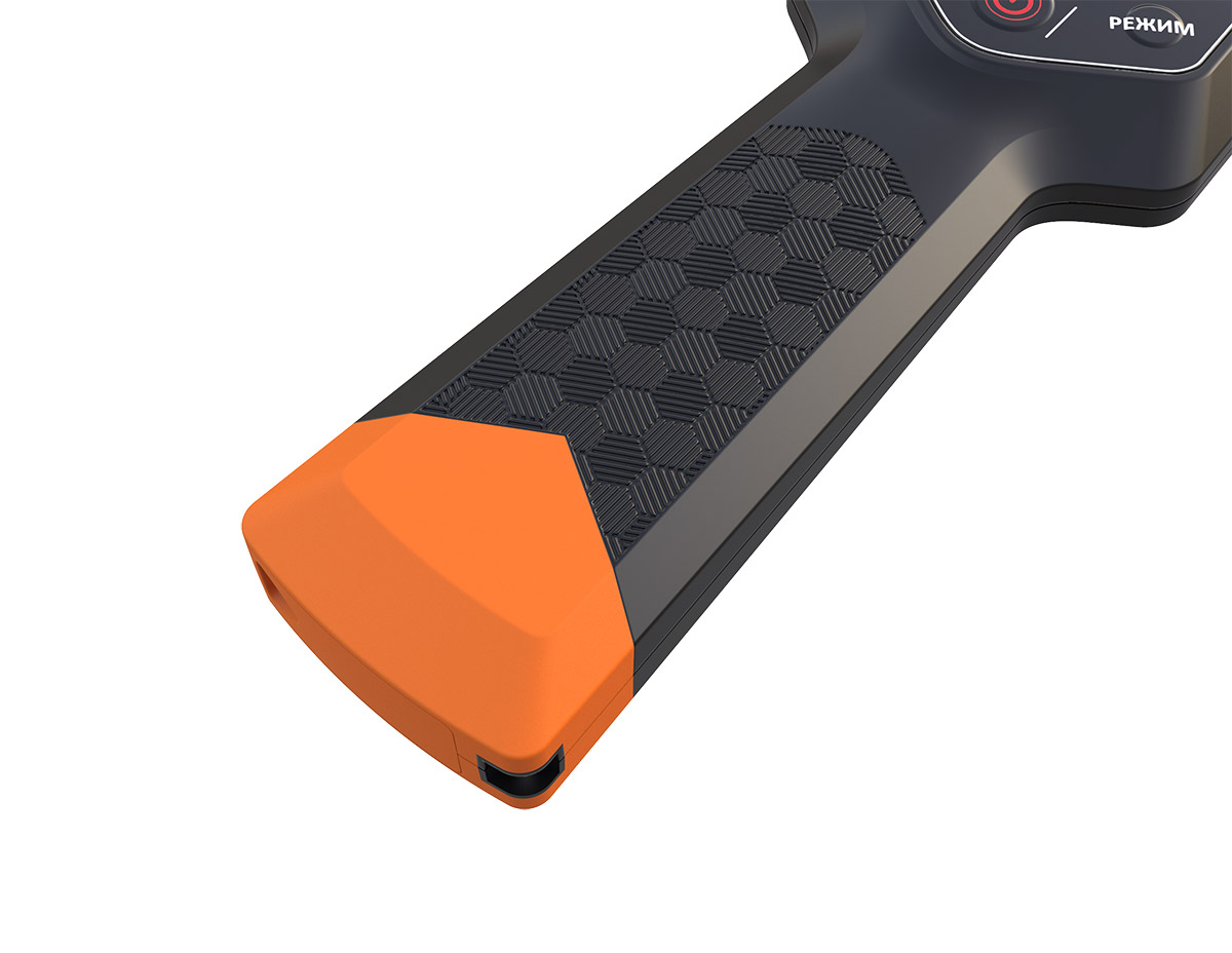 Эргономика здесь крайне важна — ведь этот металлодетектор, по сути, можно полноценно использовать только тогда, когда он находится у тебя в руках. Поэтому мы сделали макет из полимерной глины, отрабатывая на нём хват и все углы: лепили,проверяли, оценивали, лепили заново. Когда результат устроил, отсканировали получившееся и только после этого построили модель.