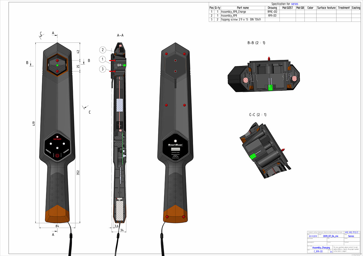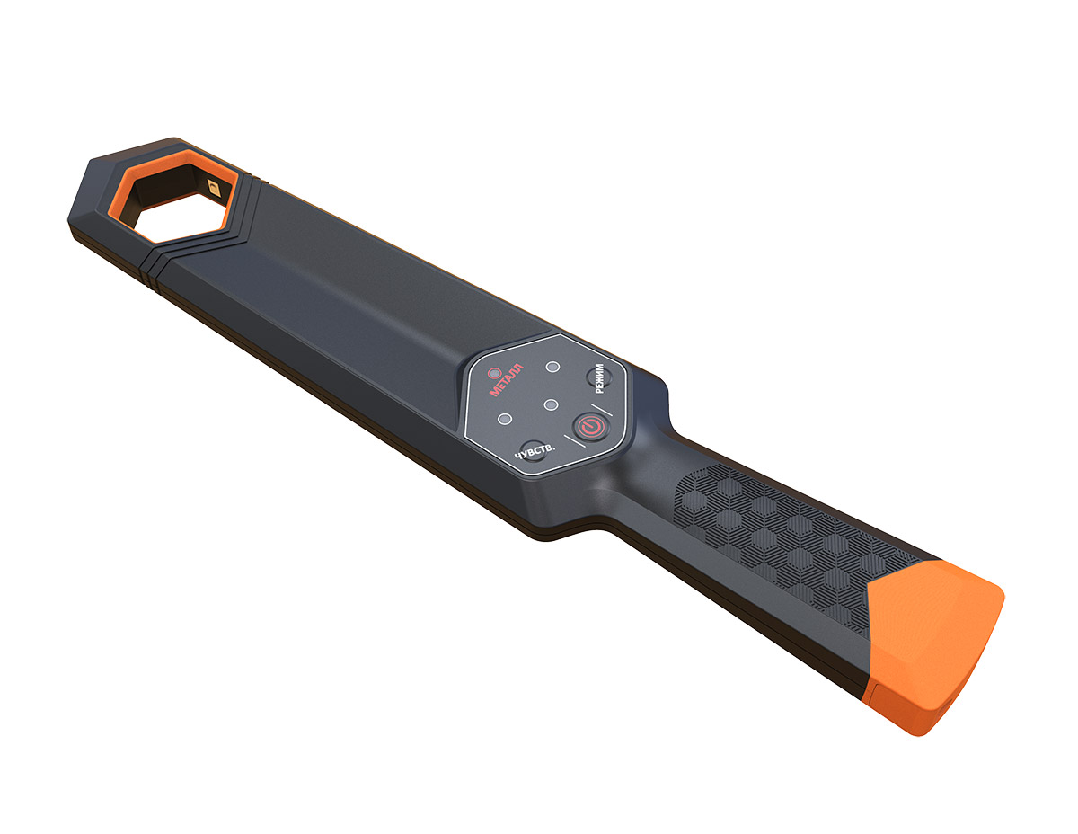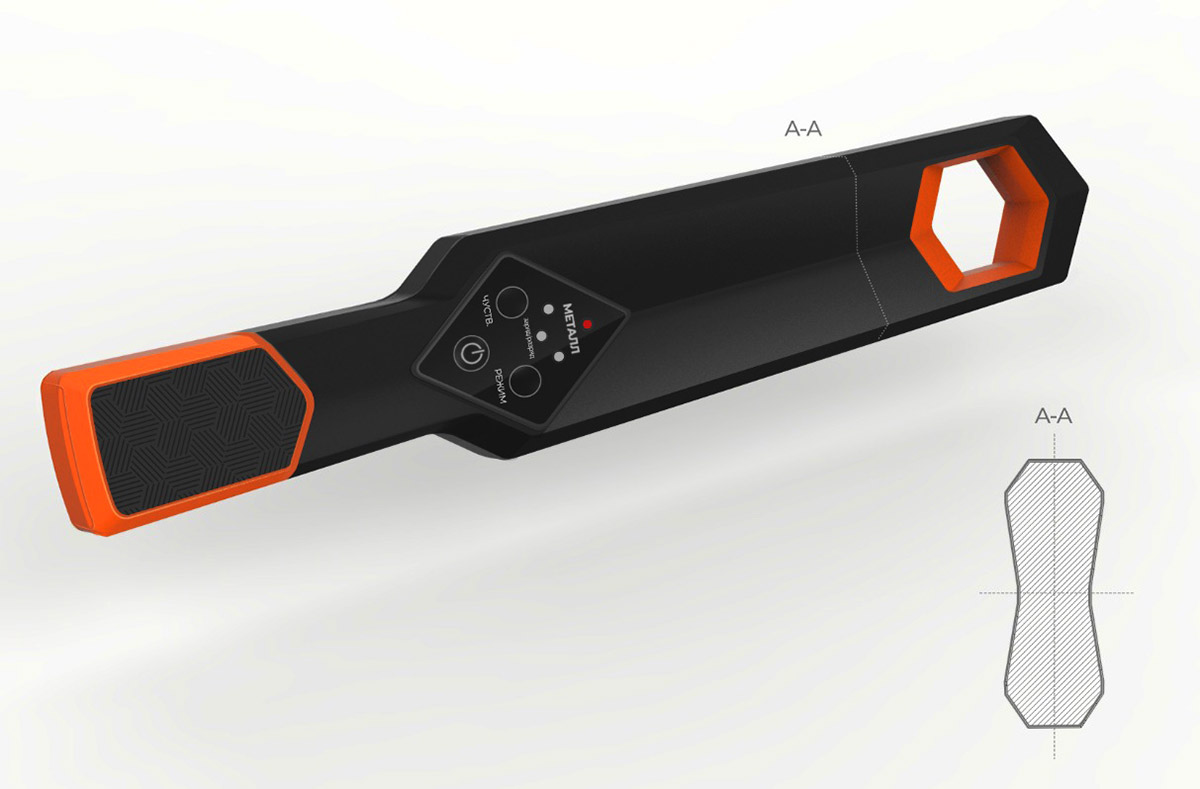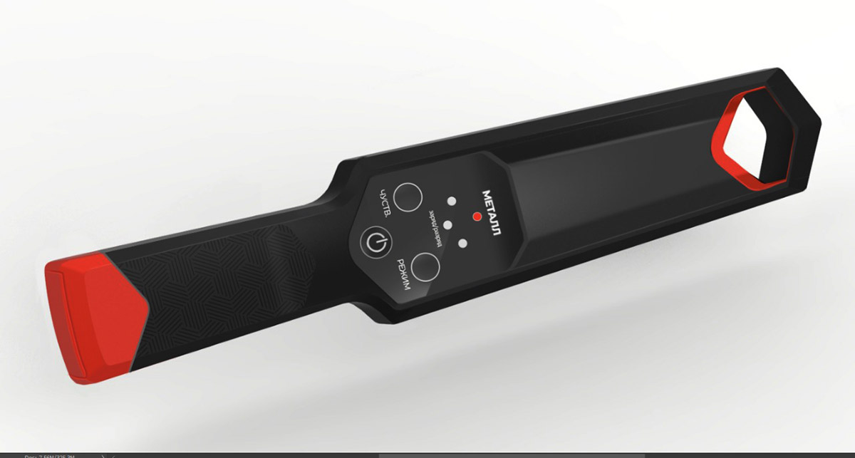 Разрабатываем дизайн и эргономику корпуса и «зарядки» для новой модели металлодетектора, — все мы проходили через досмотр, всех нас когда-нибудь, да сканировали вручную. Поэтому все мы знаем, что металлодетектор, обнаружив что-то наподобие забытых в карманах ключей, иногда попискивает, иногда — подмигивает светодиодом. Как именно он будет сигнализировать: «Нашёл!», решим в процессе разработки (спойлер: он пищит, и мигает).