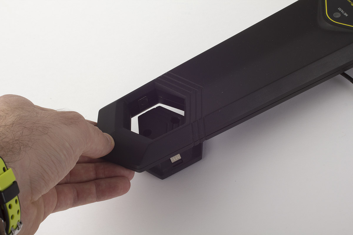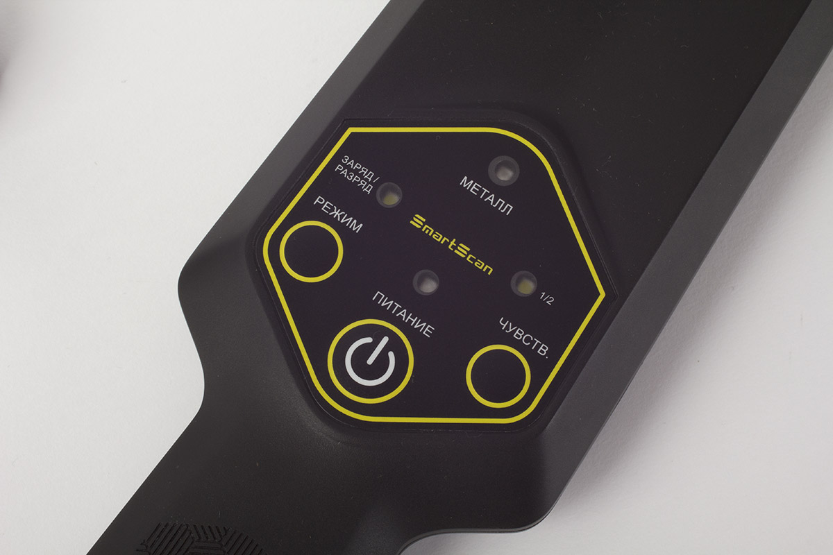 В корпусе нужно предусмотреть крышку аккумуляторного отсека с пробкой (аккумулятор устанавливается в рукоятку) и петлю для крепления металлодетектора на руку. Управляется прибор с помощью интегрированной в корпус панели.