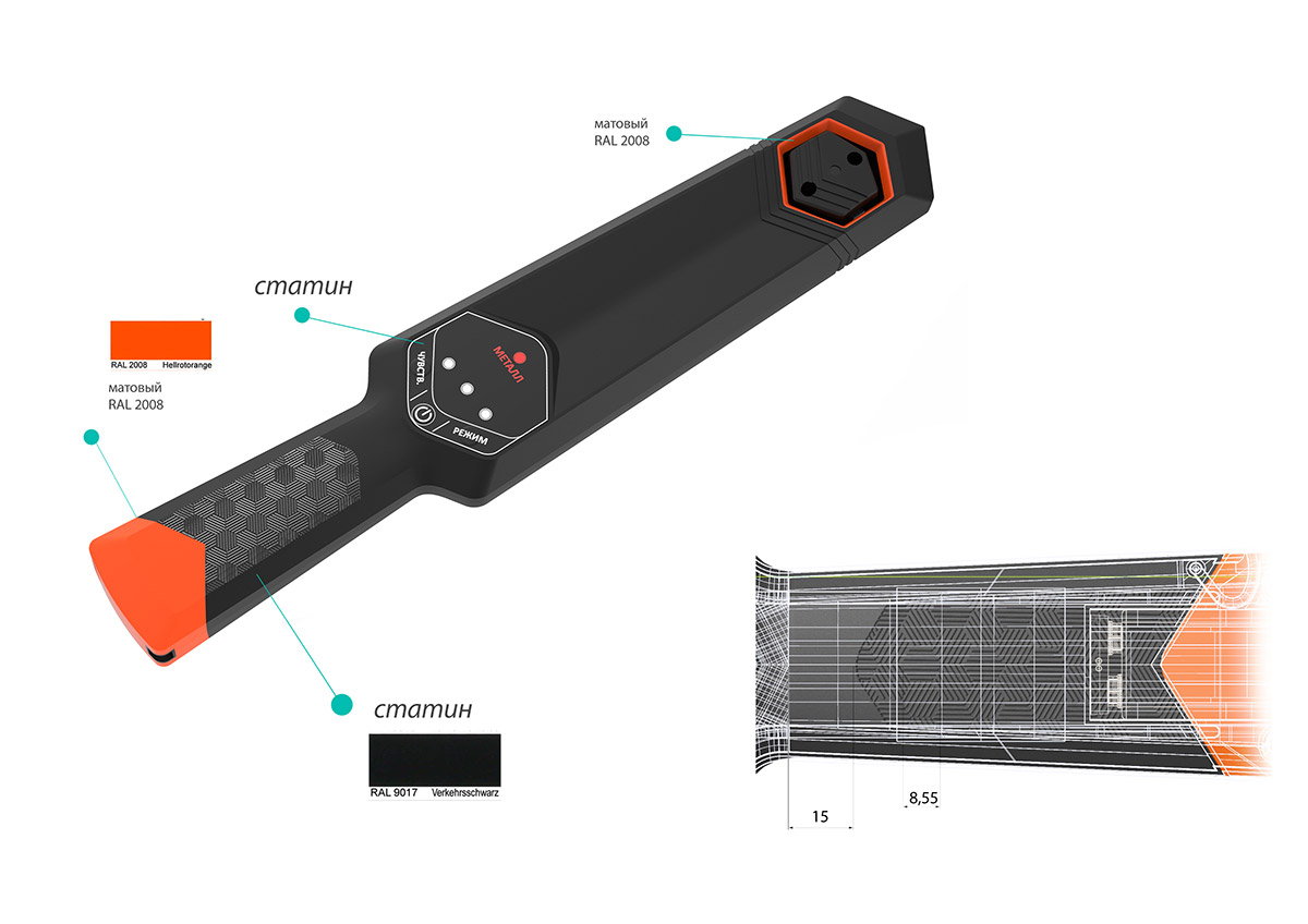 Металлодетектору нужны «динамичный» дизайн, выраженные грани и рёбра (но на усмотрение дизайнеров углы можно слегка скруглить).