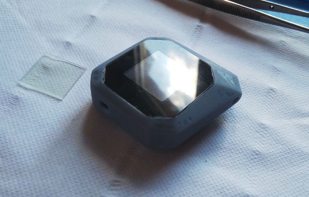 Состав корпуса: основание, верхняя крышка, антибликовое стекло (сапфировое или Gorilla Glass), плата управления, экран с подсветкой, светодиодный индикатор со световодом, разъем USB-C, кнопка управления и петля для крепления веревочки, чтобы носить с собой.