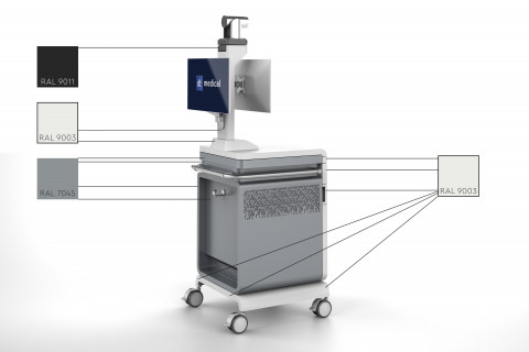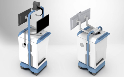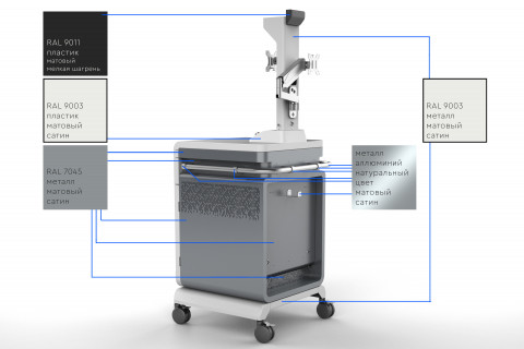 | Что нужно сделать? Задачи | 1. Корпус в ограниченных габаритах, рамная конструкция. 2. Модульная конструкция системы для оптимизации под индивидуальные потребности операционной. 3. Дизайн и качество исполнения — не хуже, чем у лидеров рынка медицинского оборудования. 4. Тормоза для колес тележки. 5. Съемные боковые стенки корпуса. 6. Продумать удобное расположение панели с элементами управления и разъемами, регулятором громкости — возле клавиатуры и чтобы доступ был спереди. 7. Вентиляционные отверстия в нижней и верхней частях стойки. 8. Состоящая из двух частей разборная конструкция, компактная и удобная для переноски и перевозки — даже в легковом авто с кузовом типа «универсал» или небольшом фургоне. 9. Скрытый подвод кабелей к мониторам. 10. Доступ внутрь корпуса для обслуживания и настройки отдельных компонентов. 11. Транспортировочные горизонтальные ручки 12. Съемная либо откидная колонна. 13. Ради безопасности исключить острые края и выпирающие углы. 14. Цвета в корпоративном стиле: белый, синий. 15. Качественные поверхности |