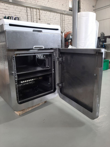 Аппарат сложный. В середине стойки размещен закрытый на ключ «коммутационный шкаф», где размещены ИБП, видеосервер, усилитель, радиосистема, гарнитура и прочая сложная начинка. Есть несколько полок, в том числе выдвижная полочка для влагозащищенных клавиатуры и мыши. Нужно продумать и то, как все удобно и компактно разместить, и как инженеру будет комфортно управлять трансляцией.