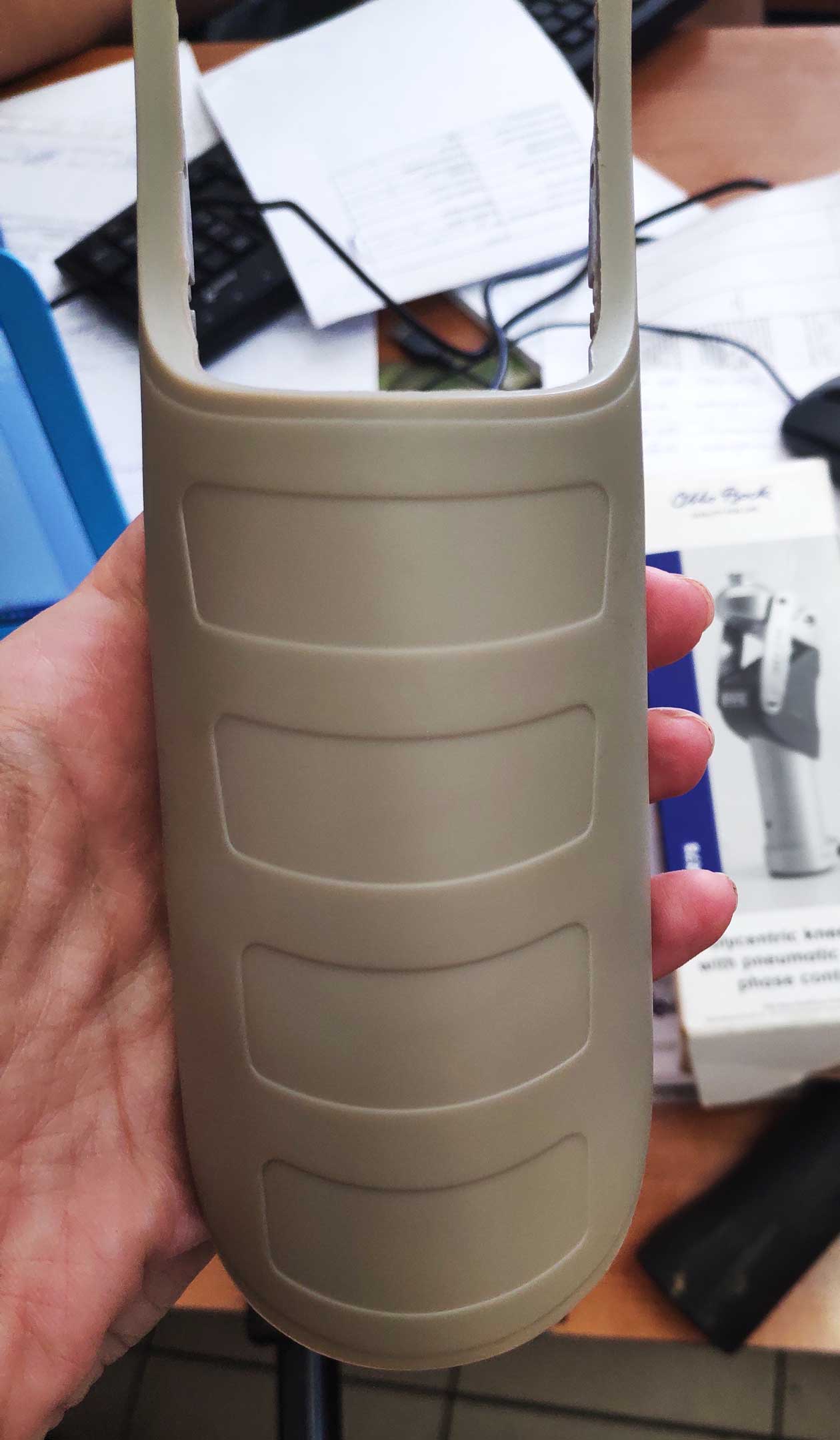 Желательно, чтобы изделие имело антропоморфную форму – напоминало здоровый коленный сустав. Но обычно для придания «правдоподобия» используют косметические облицовки — из поролона, ПВХ, силикона и т.д.