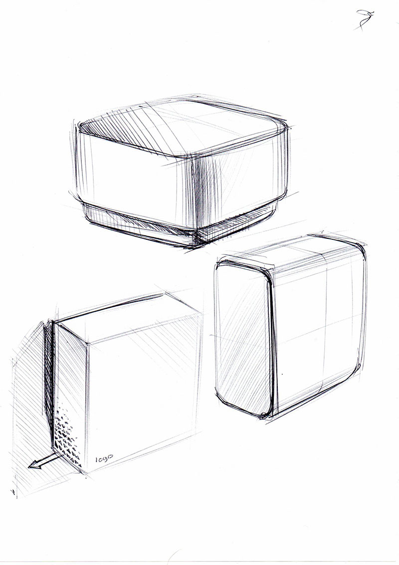 Варианты хороши, но у них есть и недостатки. Изгиб в верхней части корпуса на первом эскизе красив, ничего не скажешь. Но одновременно это потенциальный накопитель пыли и мусора. ИБП обычно устанавливают в котельных или на кухнях, а ни то, ни другое стерильными помещениями никак не назвать — грязи там всегда найдётся достаточно.