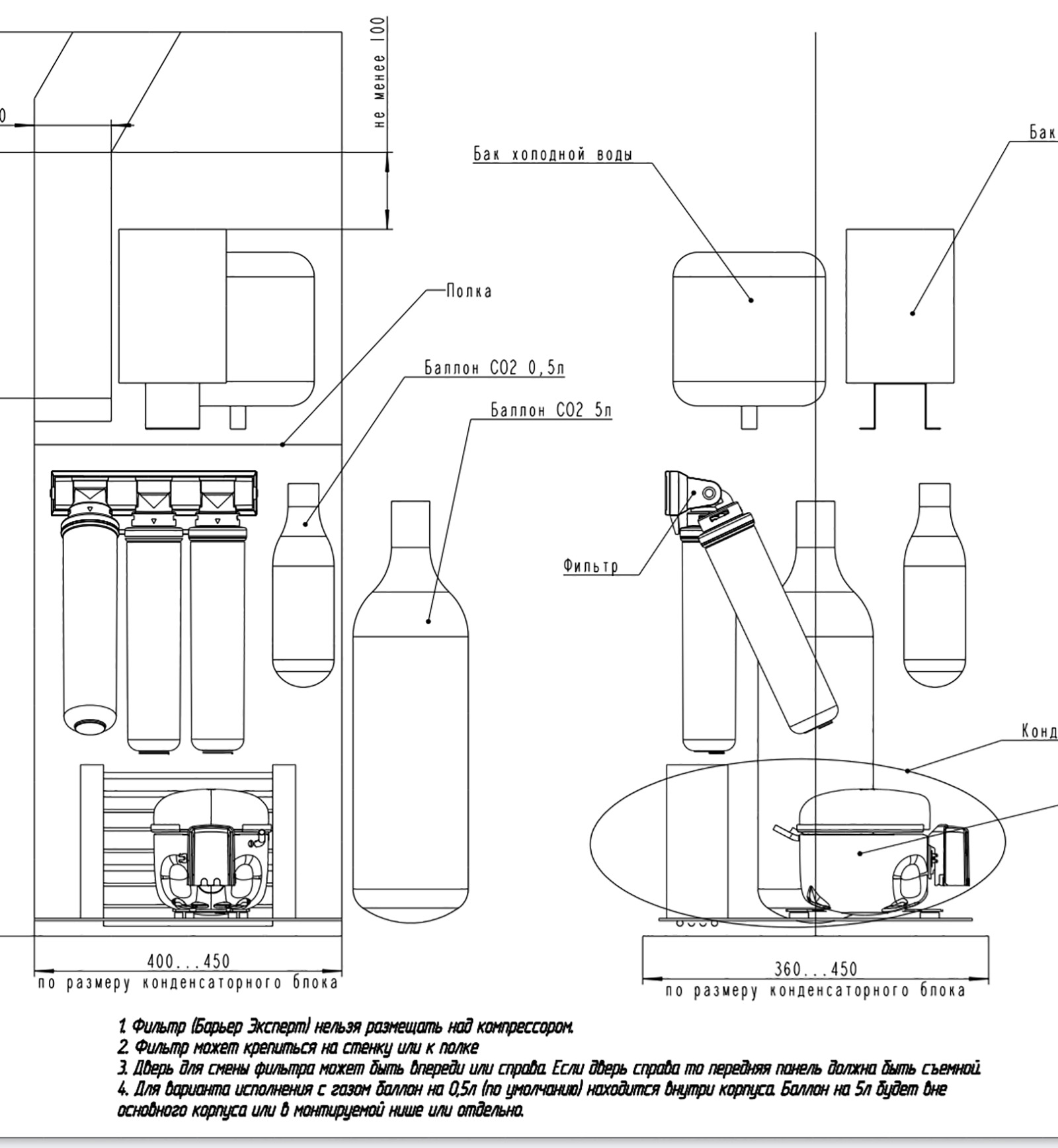 Передняя часть корпуса нового пурифайера должна быть монолитной, с внешней стороны корпуса необходимо обеспечить доступ для замены фильтров (это на случай, если прибор установлен в нише или стоит вплотную к стене, чтобы не пришлось его двигать).