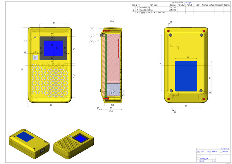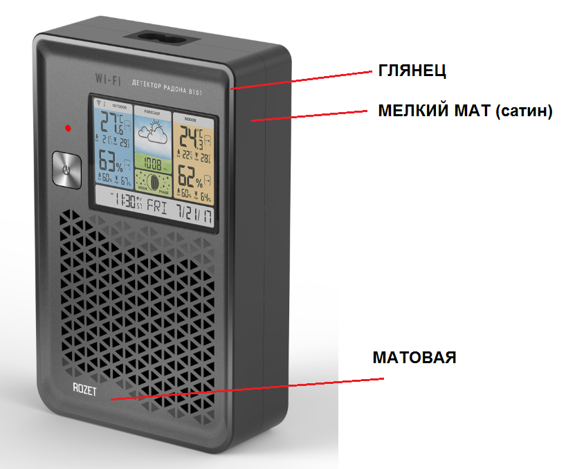 Ещё одно условие, поставленное заказчиком: корпус детектора радона должен стать «трёхтекстурным». Вот так: