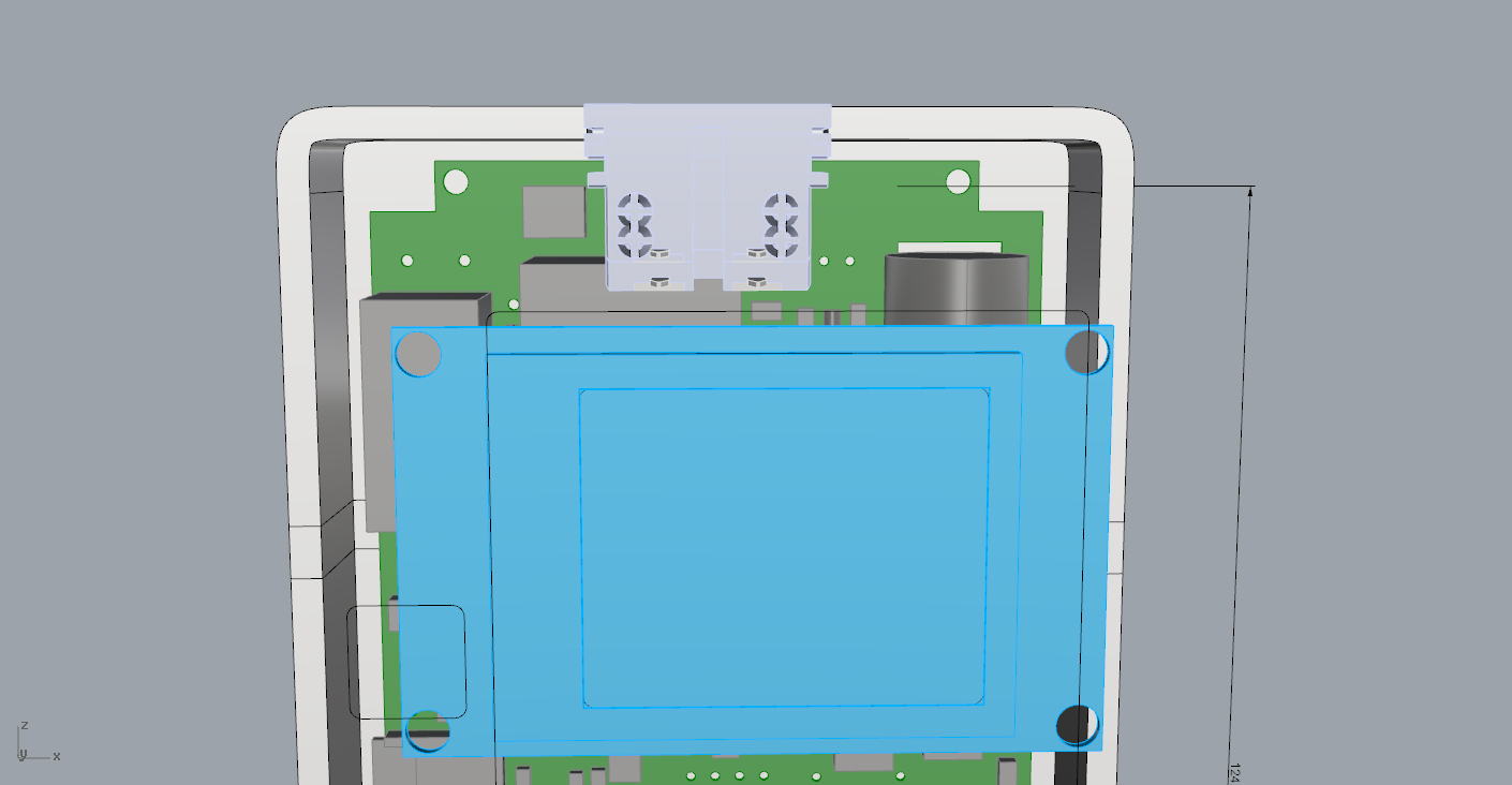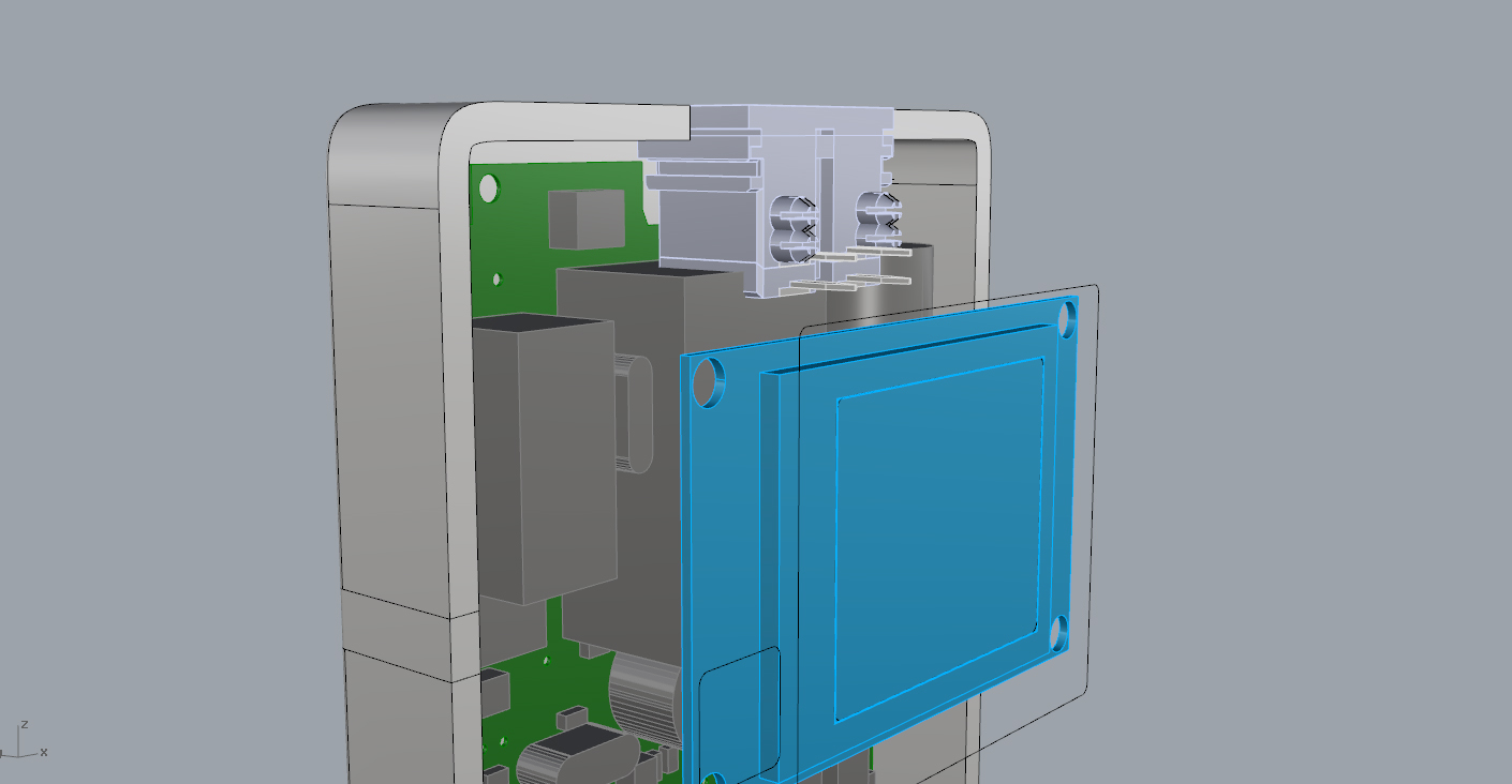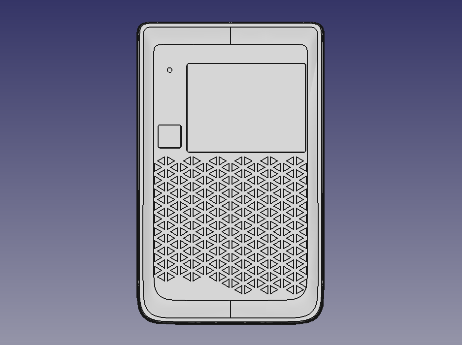 Исключительно для проверки эргономики корпуса распечатали макет. Не зря распечатали: выяснилось, что углы верхней половинки корпуса врезаются в ладонь, нужно было это исправить. И неплохо было бы немного сдвинуть дисплей. И изменить отверстия возле камер…