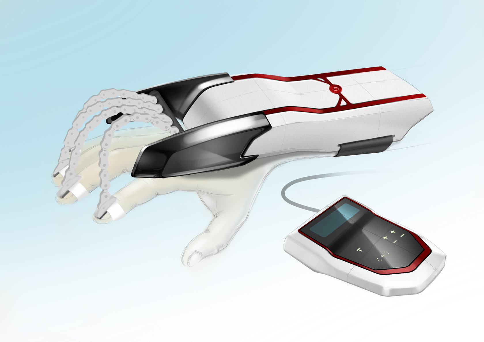 Перед заказчиком тренажёра — молодой компанией из Волгограда — стояла задача максимально удешевить производство аппарата, при этом сохранив его уникальный функционал. Ведь предстояло сконструировать и адаптировать для серийного выпуска очень сложный прибор: тренажёр с разной скоростью может сжимать и разжимать пальцы руки, помогая тем самым сохранить подвижность суставов. Он применяется в реабилитационной терапии после инсультов или травм кисти.