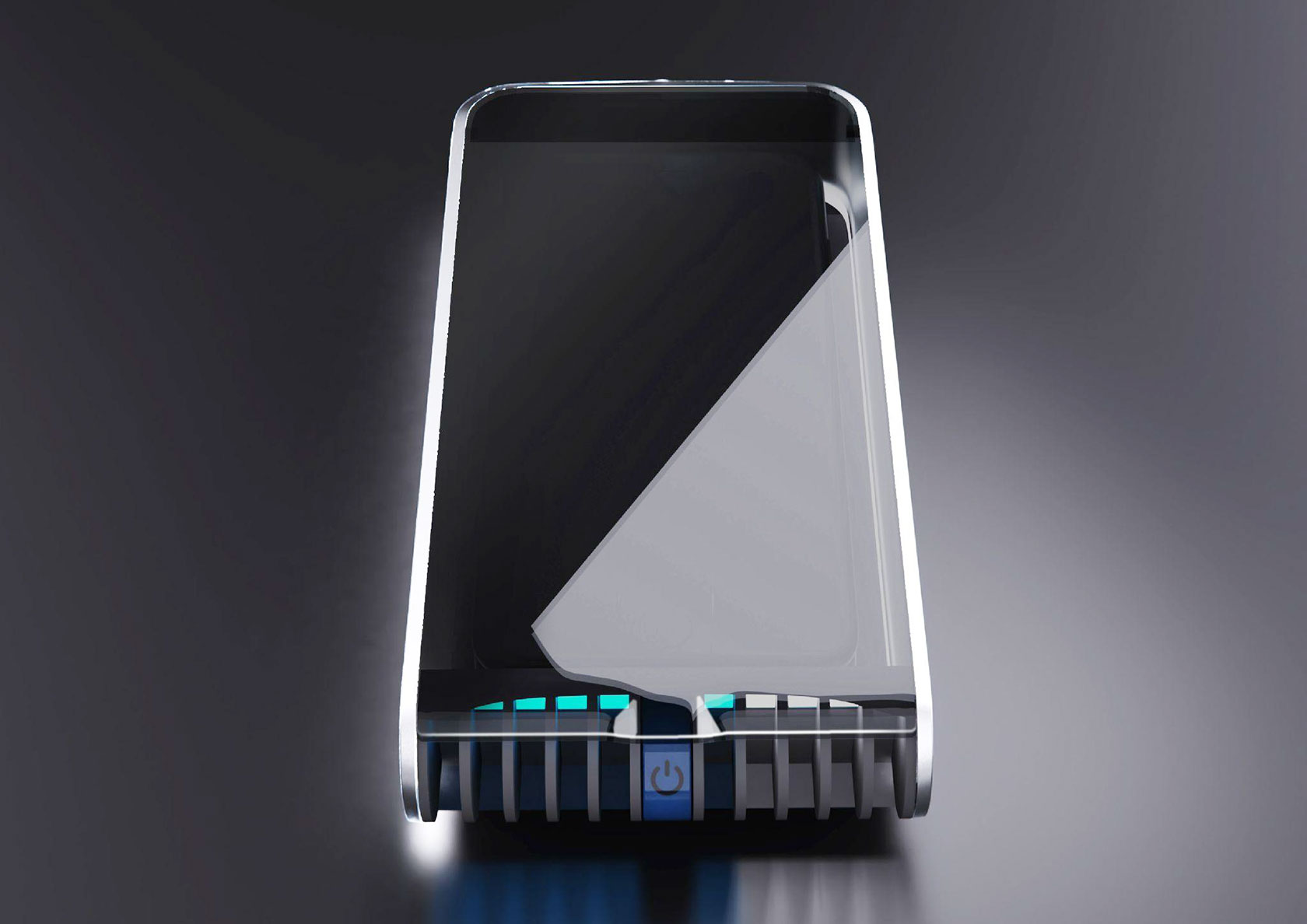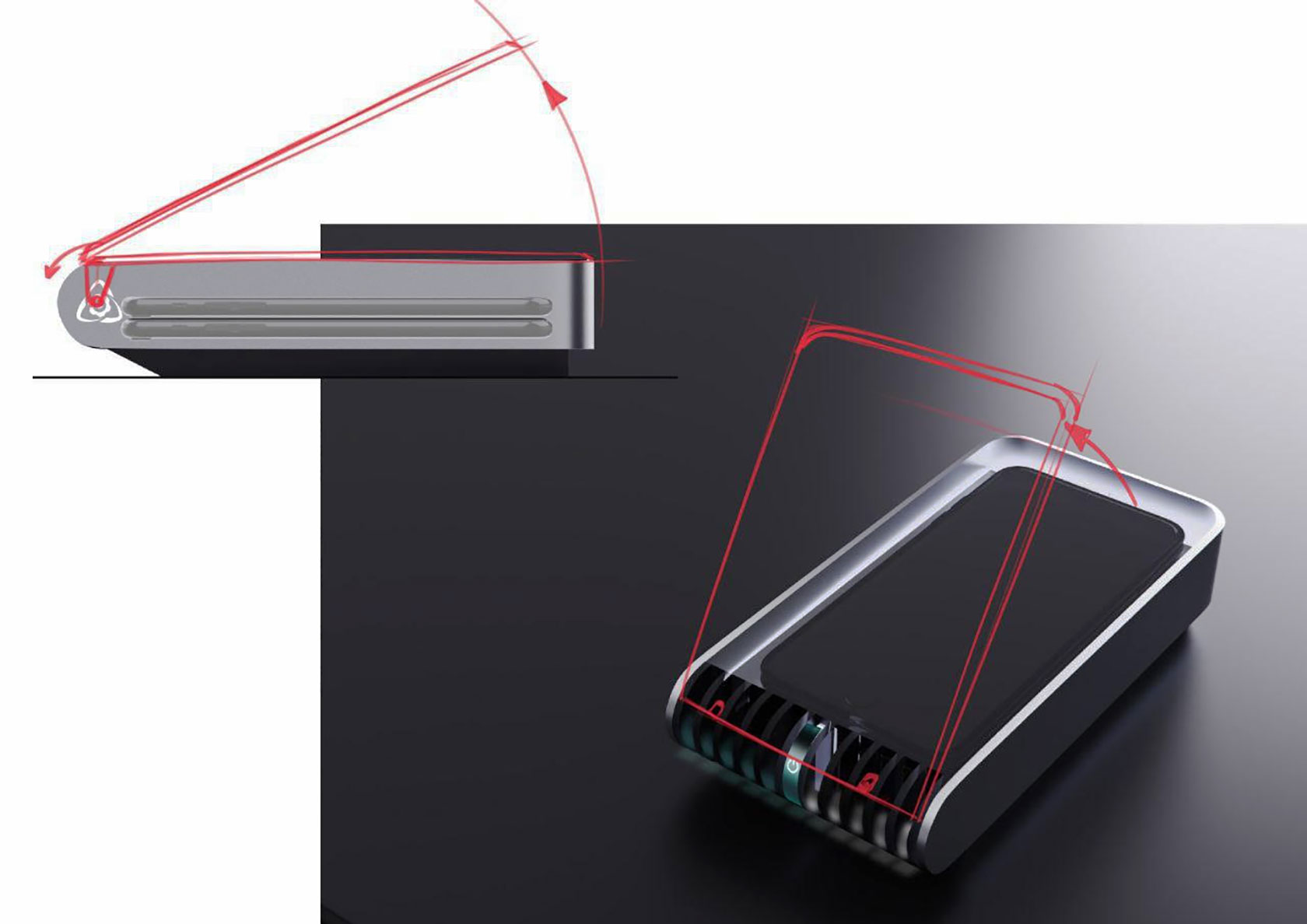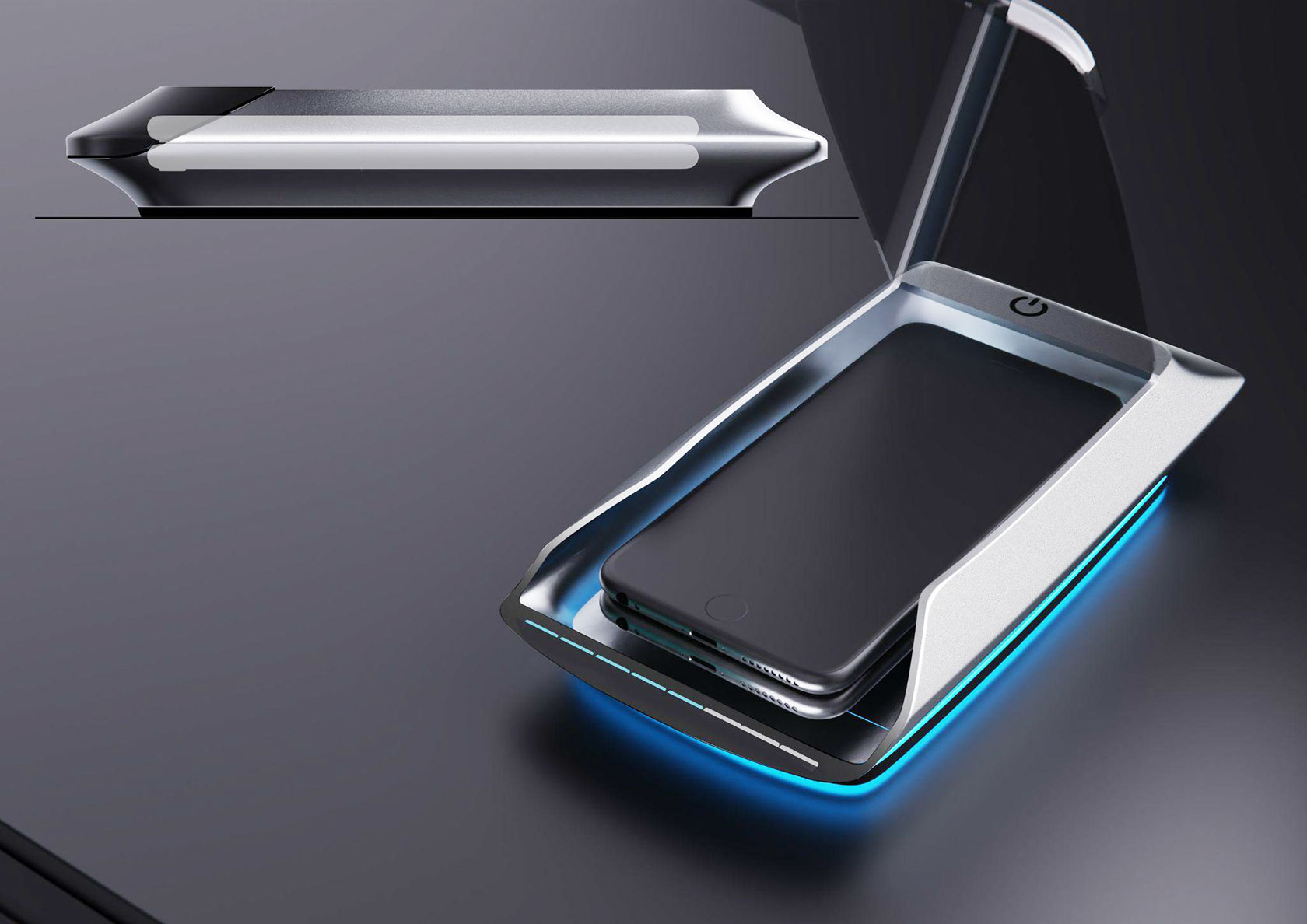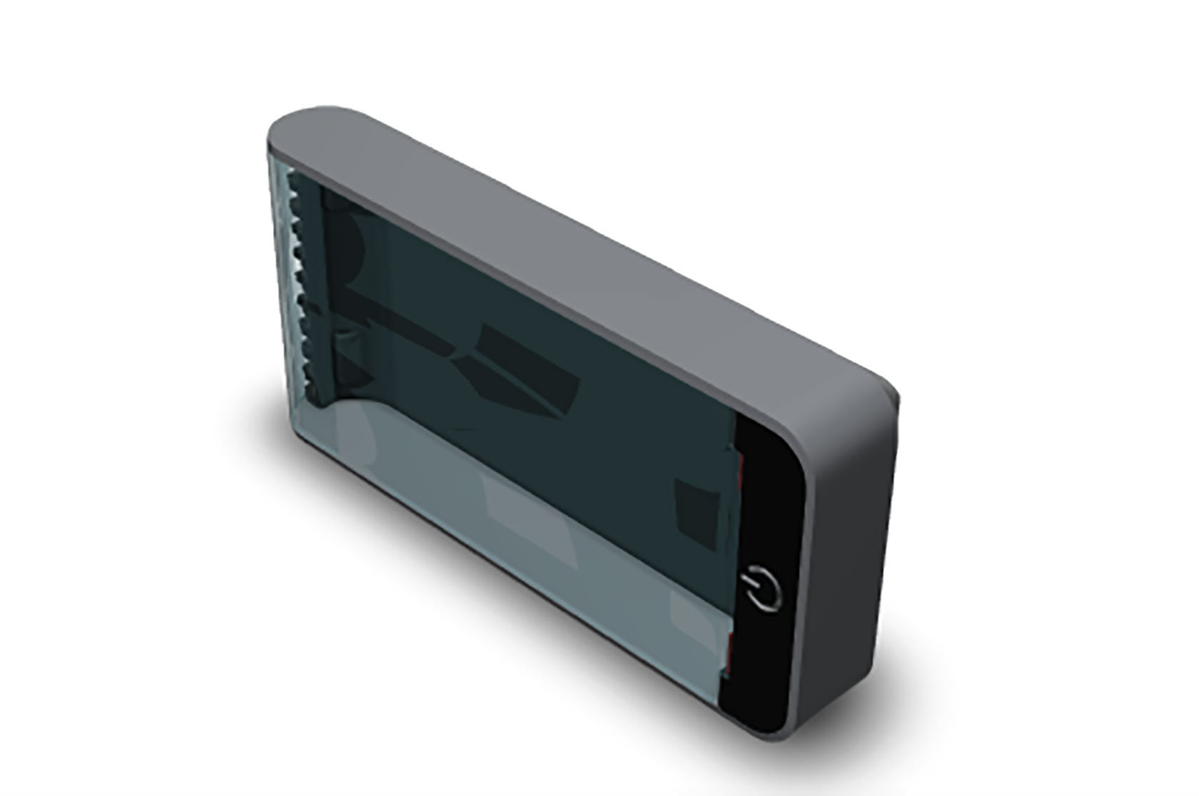 | Что нужно сделать? Задачи | 1. Впечатляющий «премиальный» дизайн в стиле hi-tech. 2. Корпус из пластика или алюминия. 3. В сейфе должны умещаться 2 телефона или один телефон и смарт-часы. 4. Прозрачная крышка с удобным креплением. Прозрачная — чтобы можно было увидеть на экране телефона входящий звонок. 5. Подсветка на дне сейфа. 6. Звукоизоляция устройства, внутренняя отделка из мягкого материала для защиты телефонов от повреждений. |