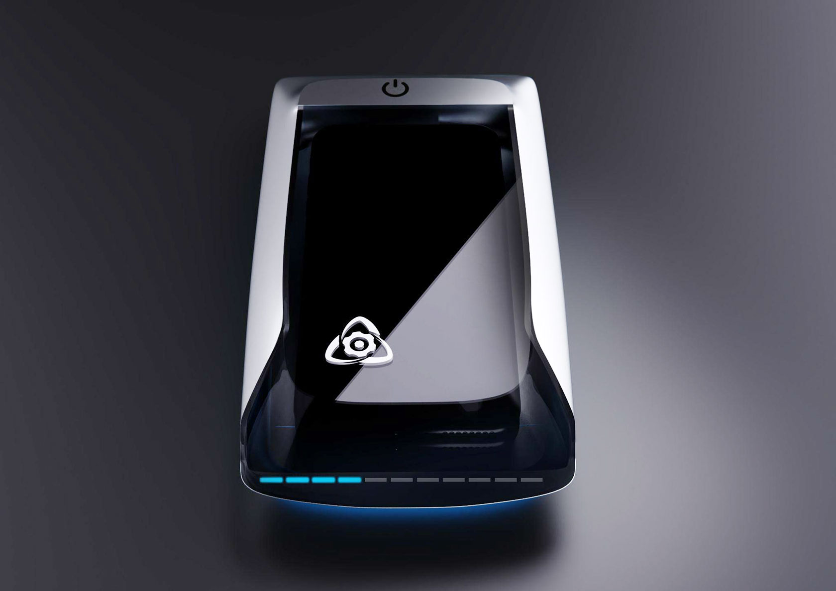 | Решения и объем работ | Разработали 5 вариантов концепт-дизайна в стилистике хай-тек, техноминимализм. Два из них заказчику понравились больше остальных, их и оставили. Продумали звукоизоляцию прозрачной крышки (это трудно, потому что тот же монолитный материал запросто проводит звук) и ее крепление к основному корпусу. Посоветовали электронщиков для доработки компоновки сейфа. Напечатали макеты двух вариантов корпуса. |