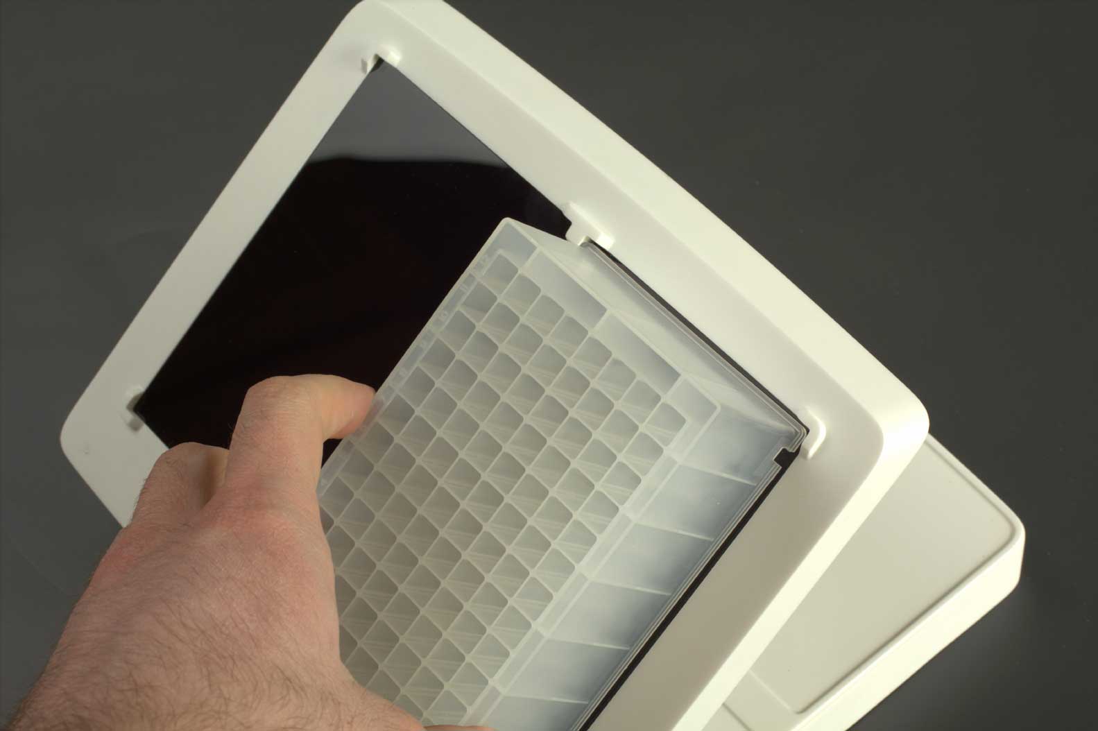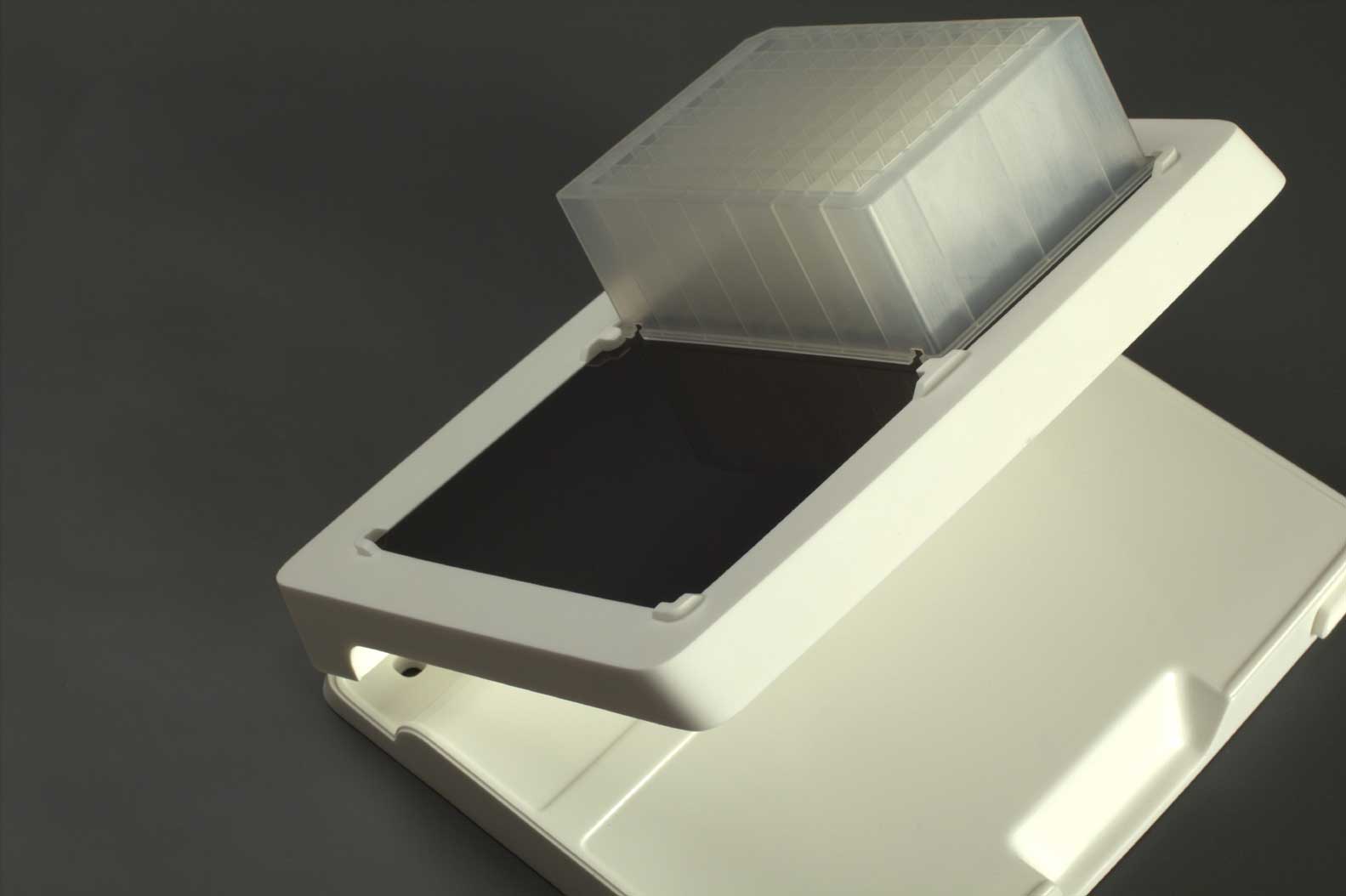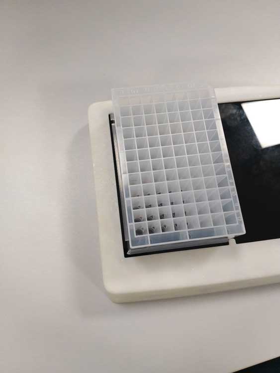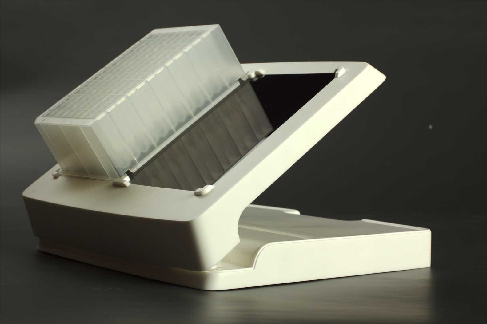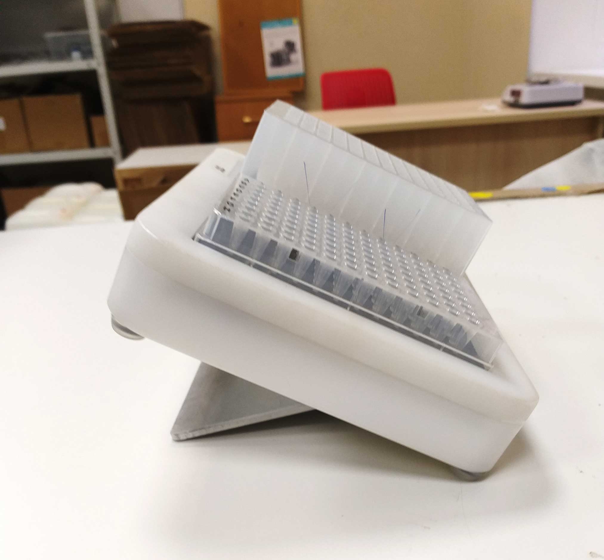 Светодиодная подставка — вещь, необходимая для проведения популярного ПЦР-анализа. На эту подставку в лаборатории устанавливается специальный планшет с пробирками, лаборант на ПК выбирает нужный реагент, а подставка подсвечивает лунки, в которые этот реагент необходимо налить.