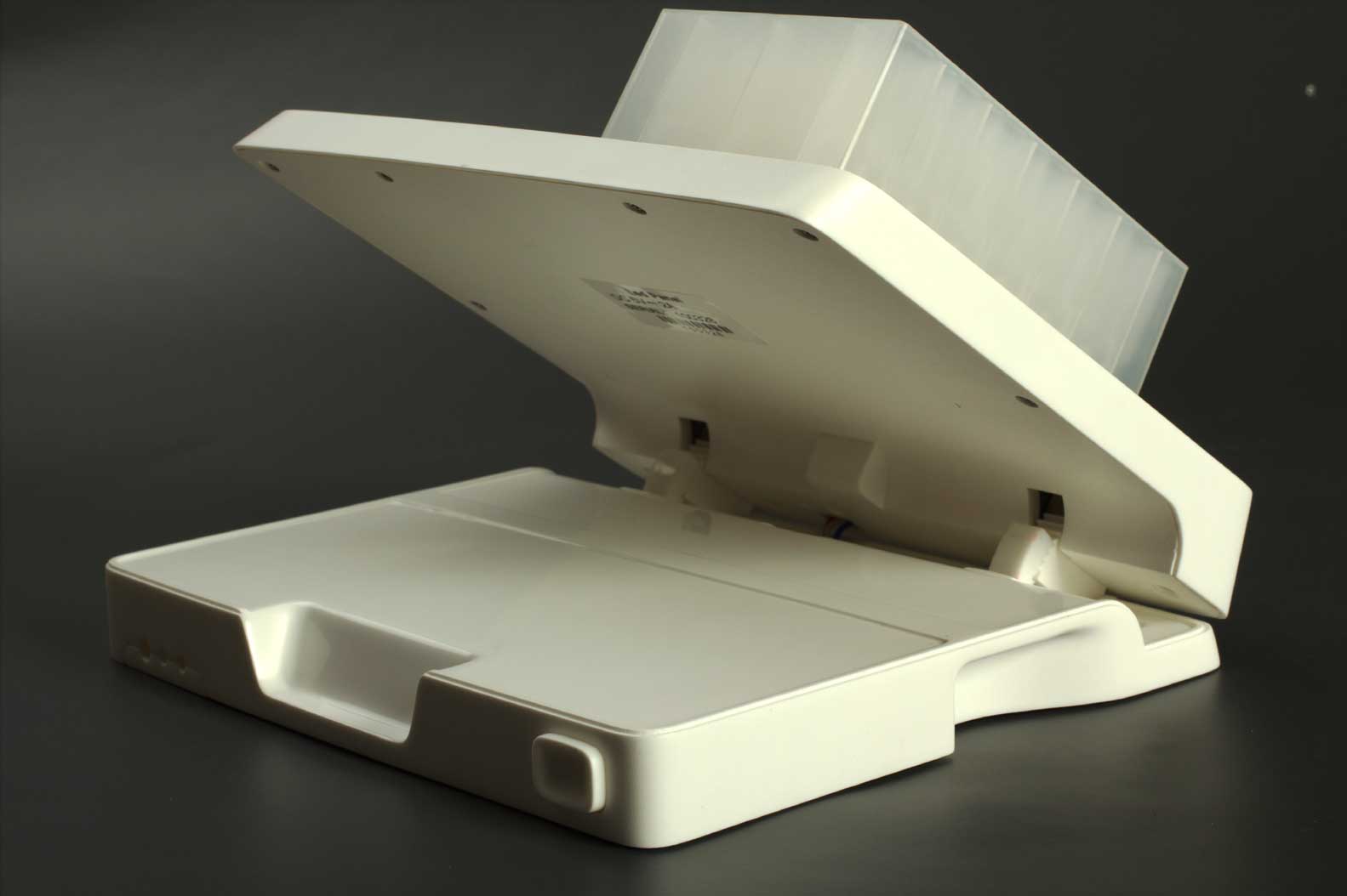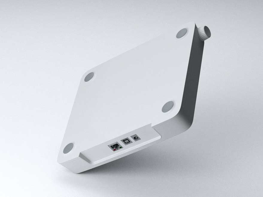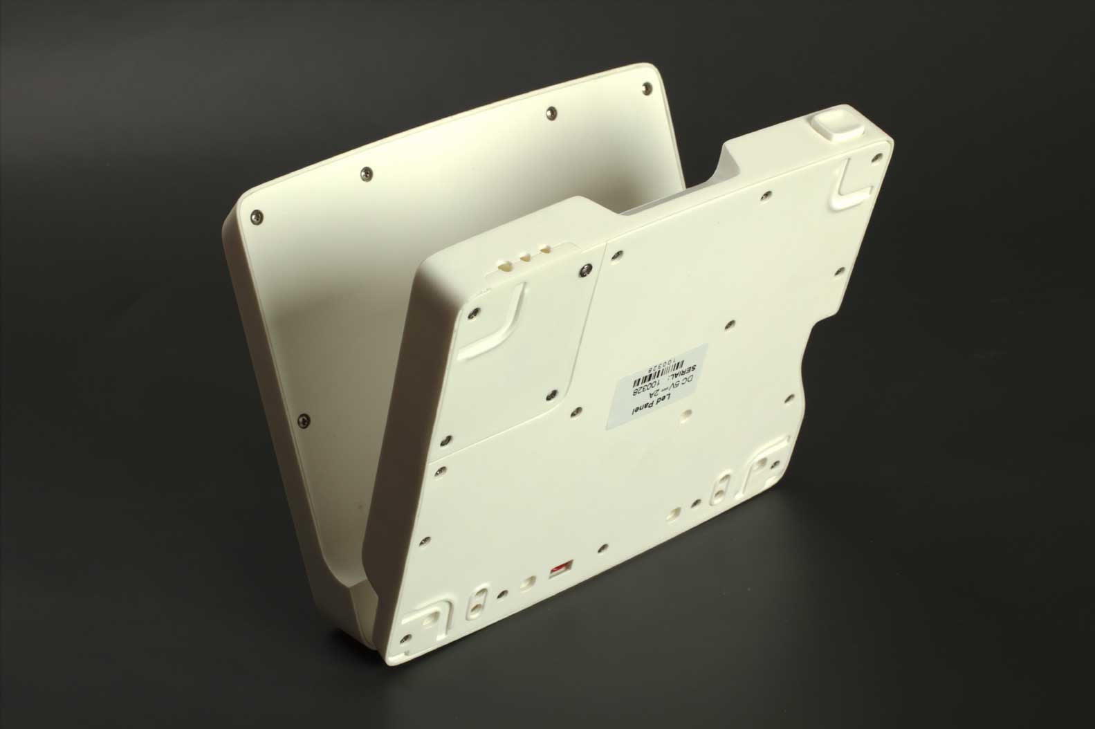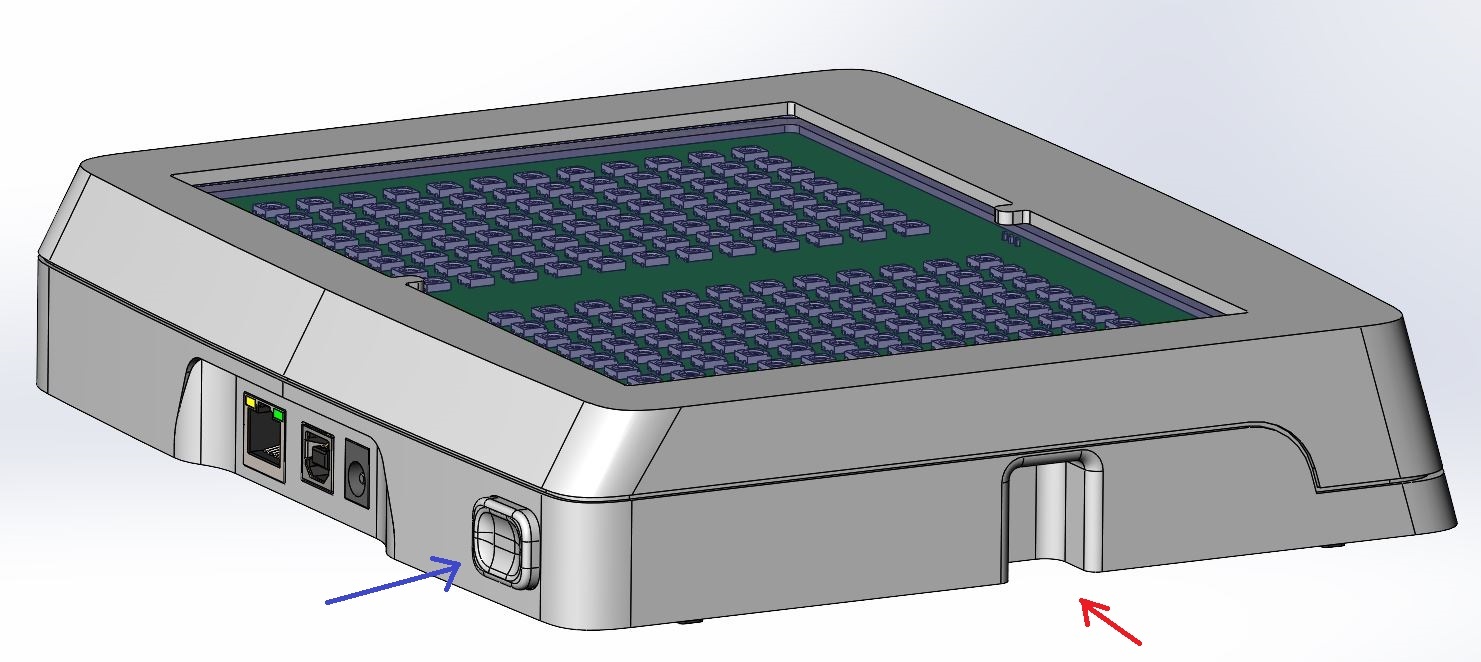 На корпусе есть разъёмы питания, Ethernet, USB, собственно механизм, регулирующий угол наклона, нескользящие ножки и стекло над светодиодной панелью из акрила. Стекло обеспечивает затемнение, чтобы скрыть светодиоды и плату.