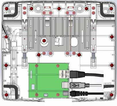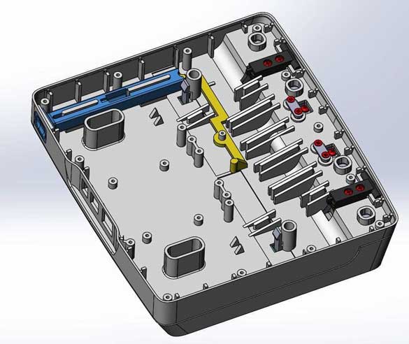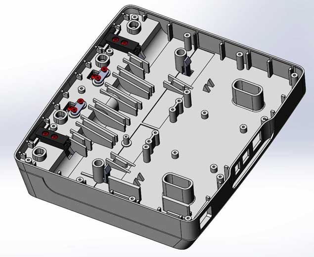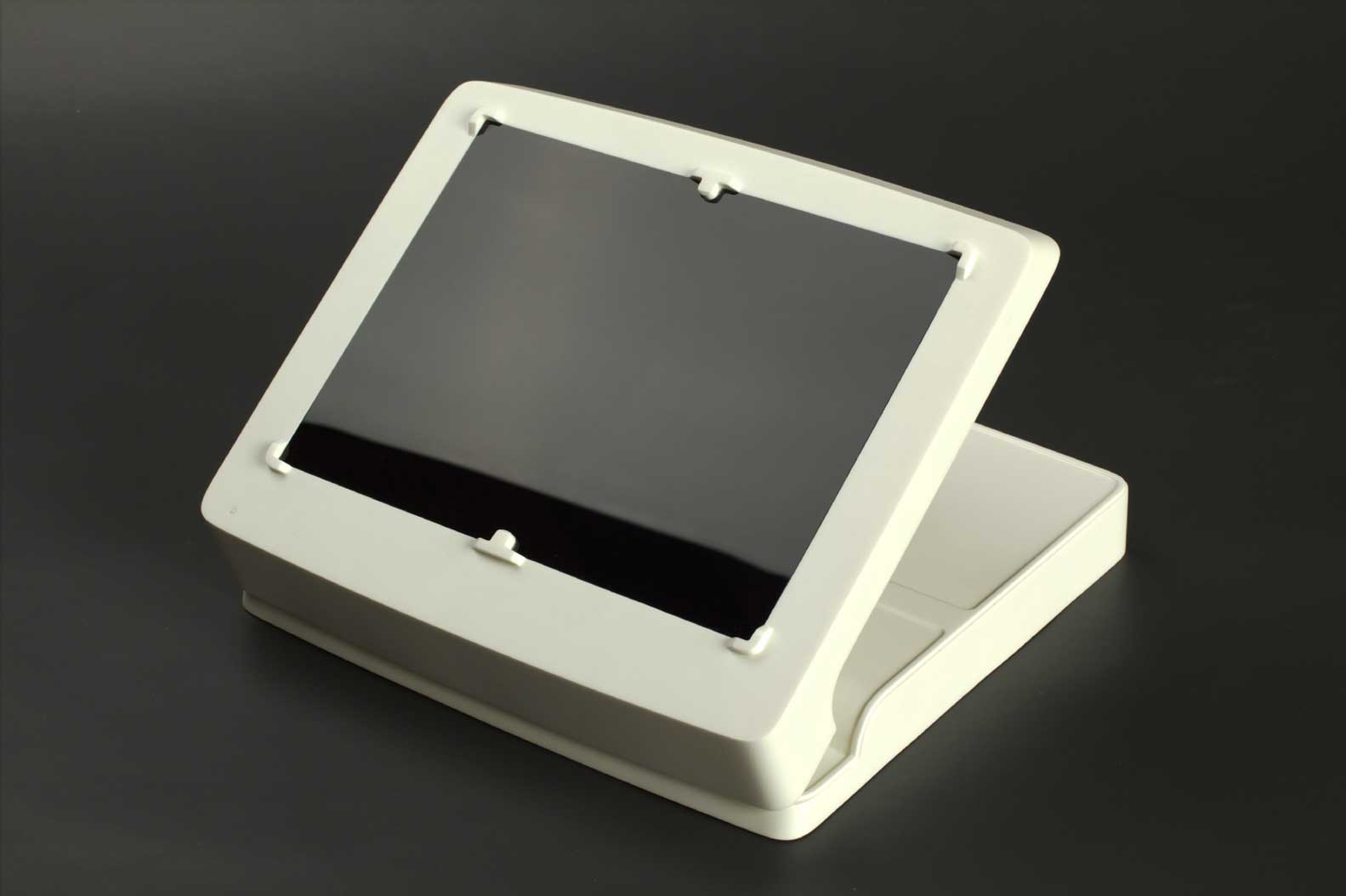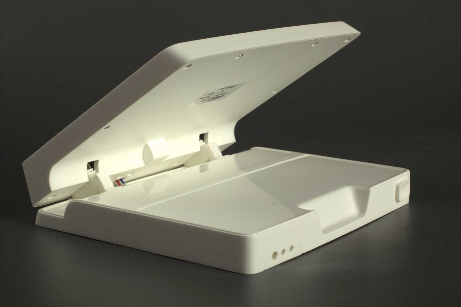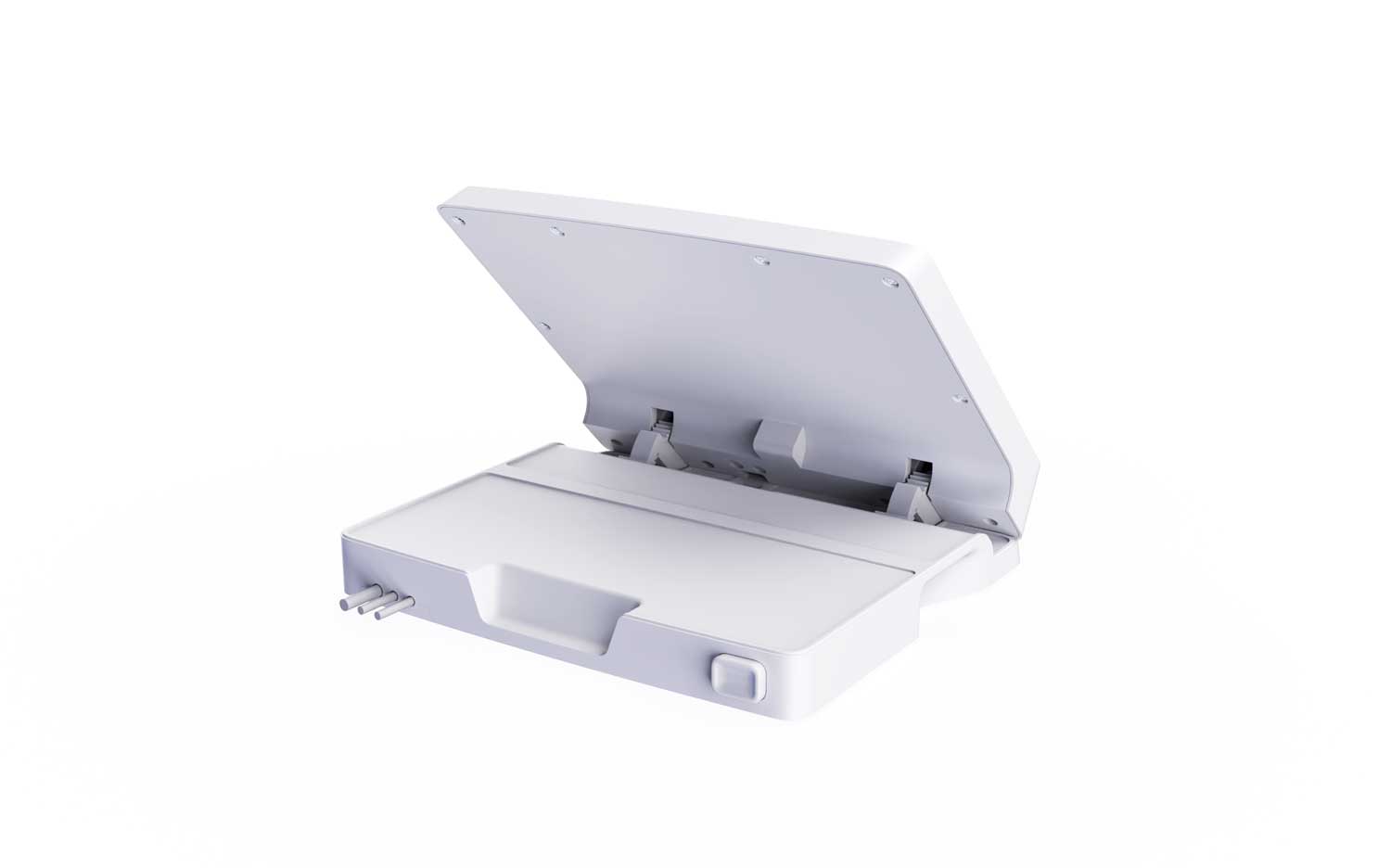 Платы внутри корпуса и сами половины корпуса должны крепиться при помощи винтов; соединение — разъёмное, с использованием металлических закладных. Материал корпуса нужно выбрать устойчивый к обработке обеззараживающими составами и облучению ультрафиолетом. На подставку запросто могут нечаянно пролить какой-нибудь реагент, и она должна без проблем это выдержать.