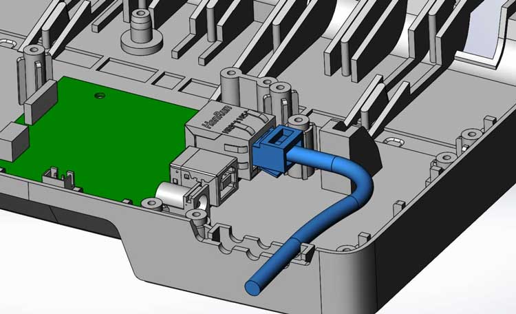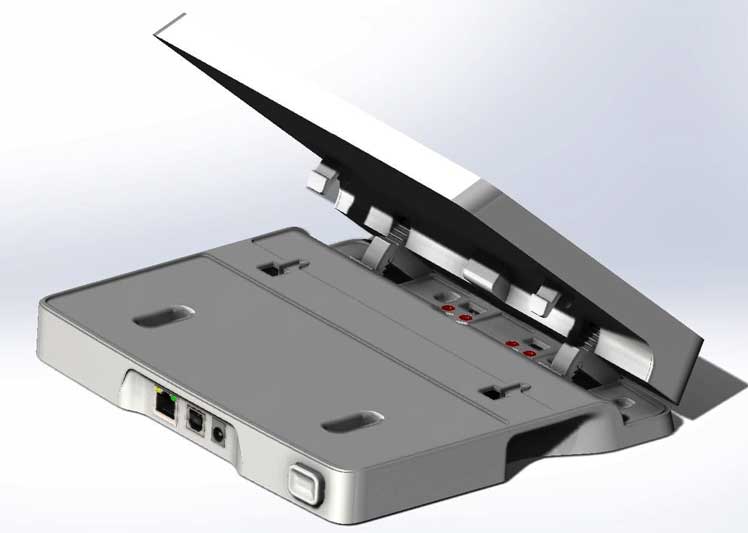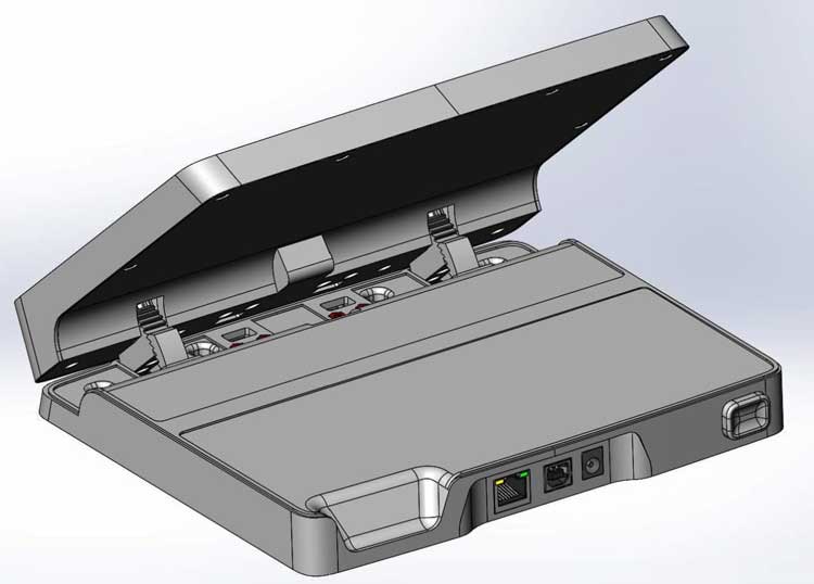 Определяемся с разъёмами на плату, механизмом регулировки угла поворота подставки, добавляем в модель поднутрения крышки — чтобы подставку было удобно открывать.