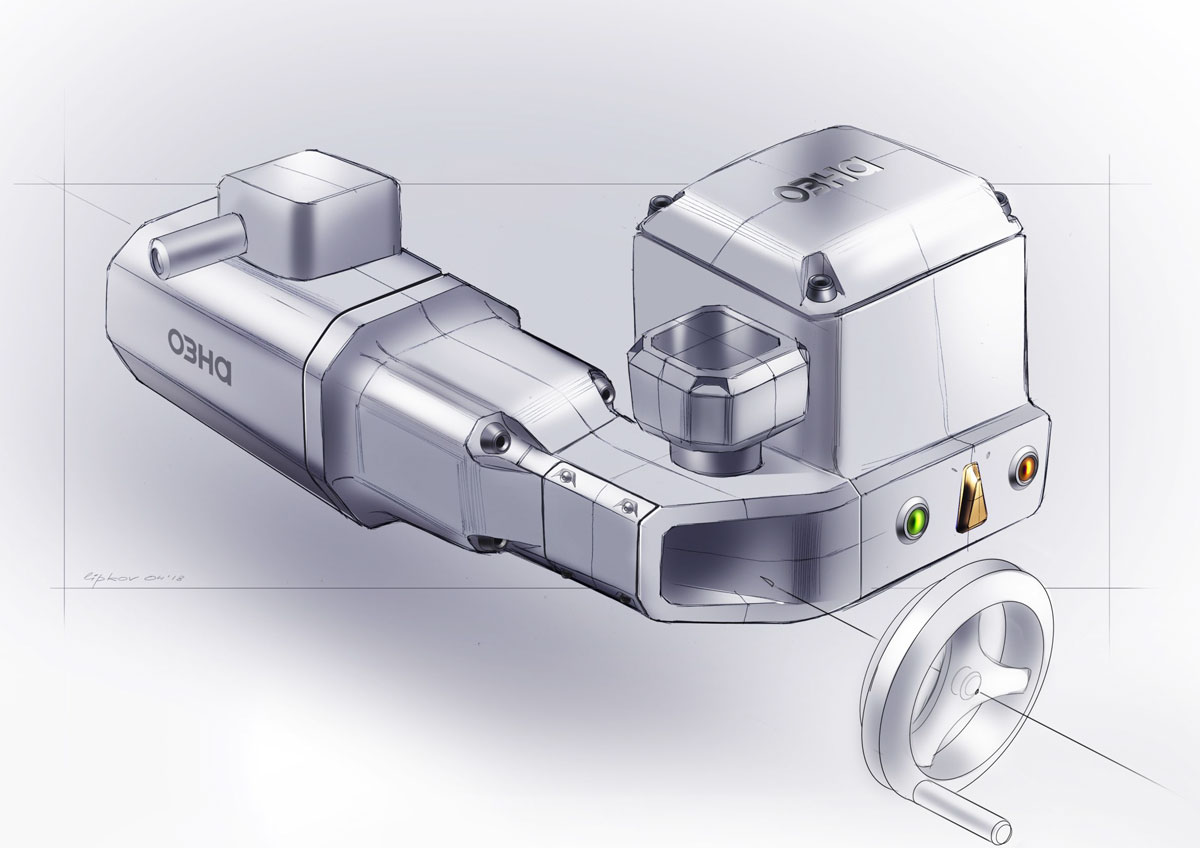 Заданные в ТЗ габариты изменять нельзя. Соединения деталей корпуса нужно реализовать с помощью имбусов (крепежа с шестигранными шлицами); можно закрыть электродвигатель декоративной накладкой. Индикатор положения арматуры операторы должны видеть при любом типе установки!