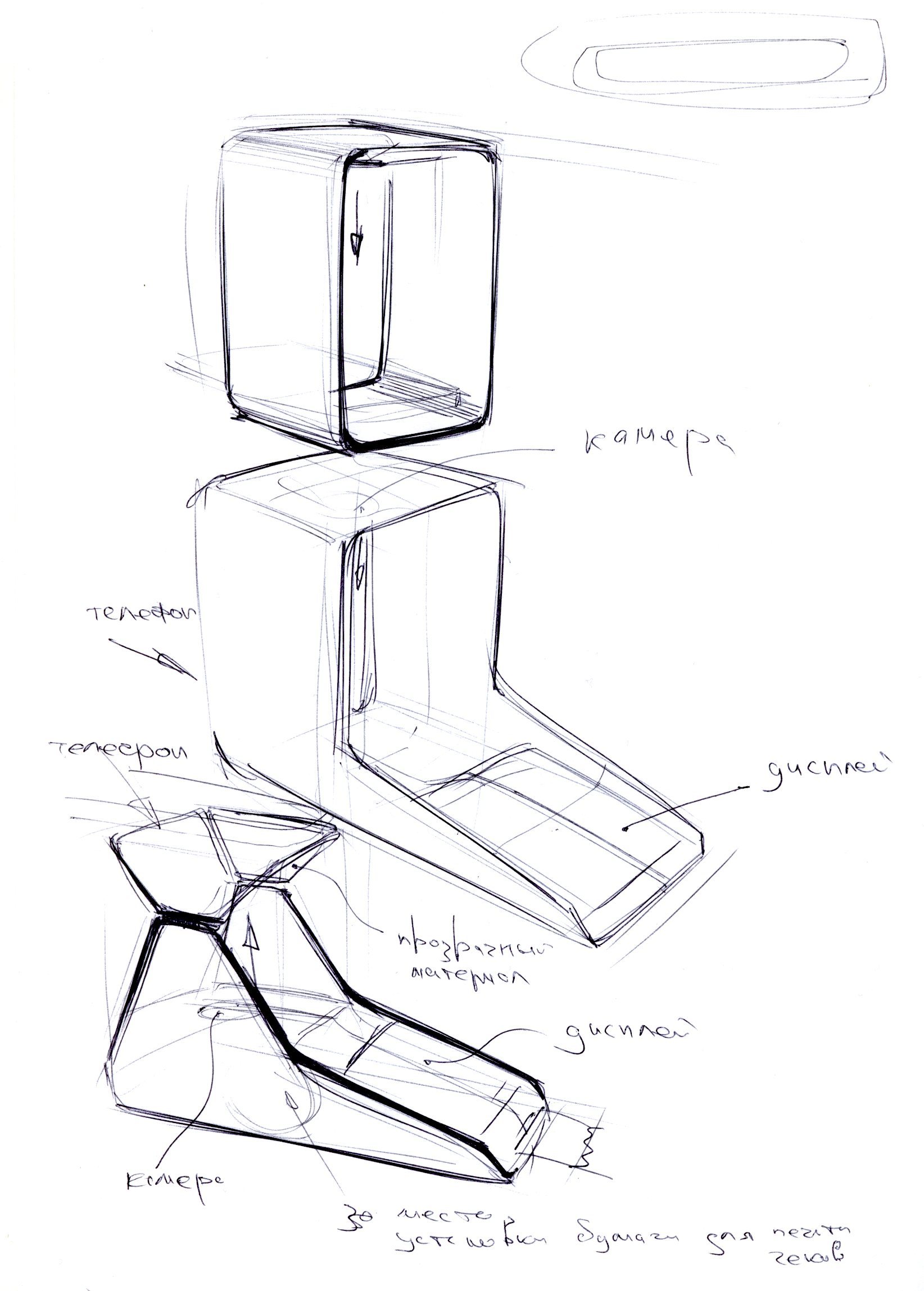 Нарисовали много эскизов. Ключевым элементом дизайна стал тачскрин — его пропорции определили размер всего корпуса.