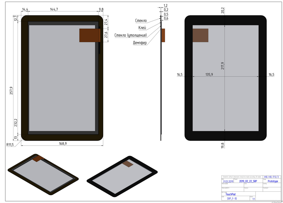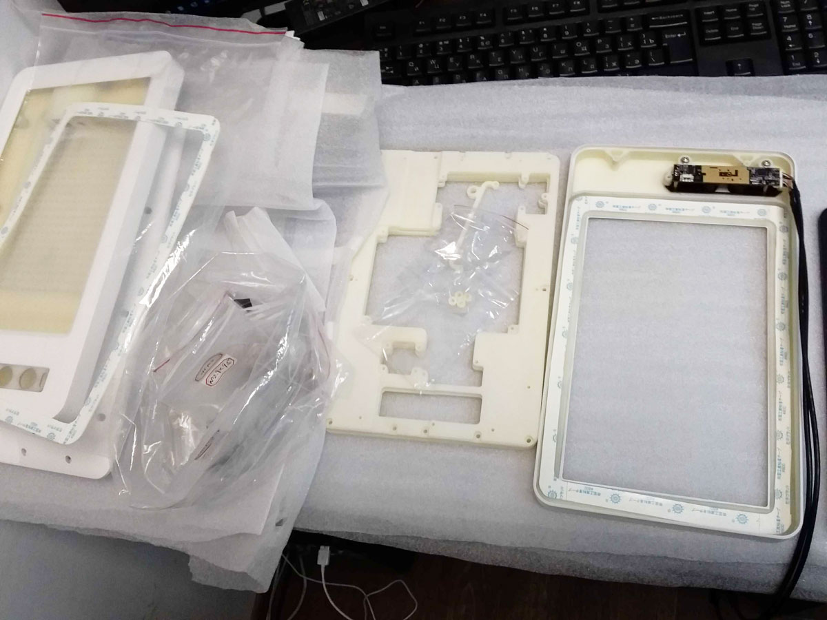 Но самое интересное было впереди: присланный заказчиком тачскрин был частью неразборного комплекта. Демонтаж мог вывести из строя все устройство, то есть полностью убить проект: ведь времени на заказ нового экрана не было. Решили прятать в корпус весь узел — без разборки.