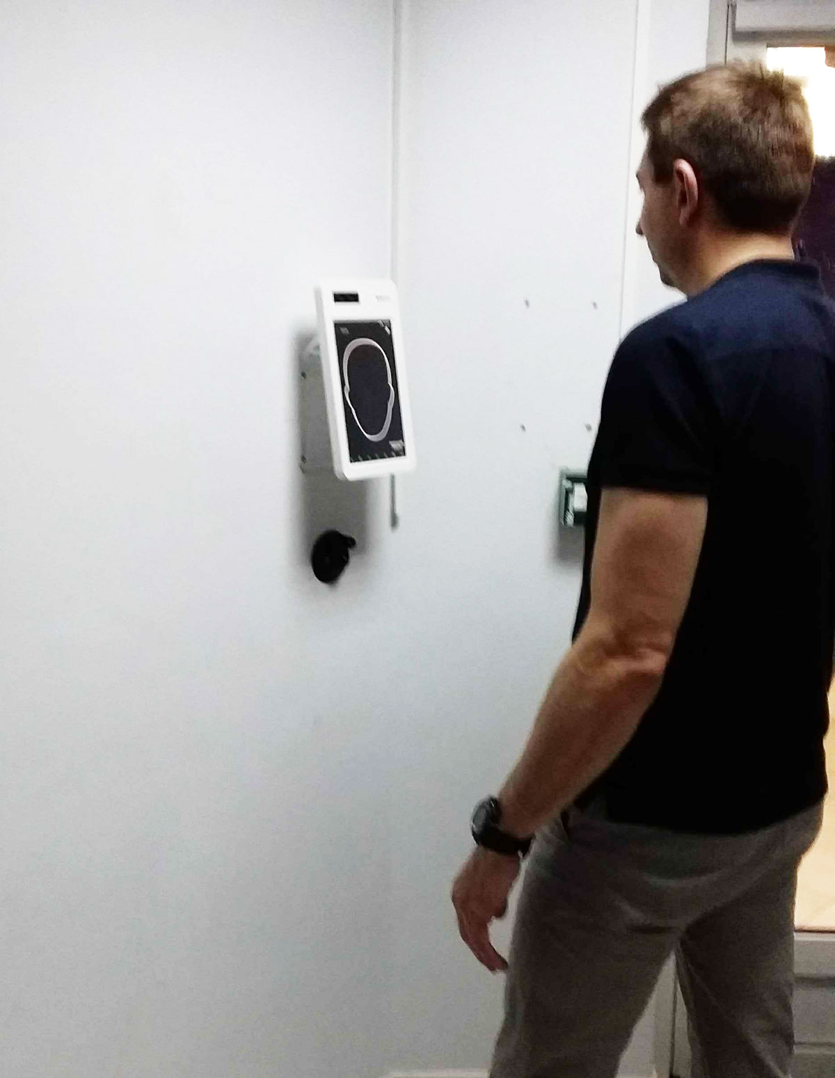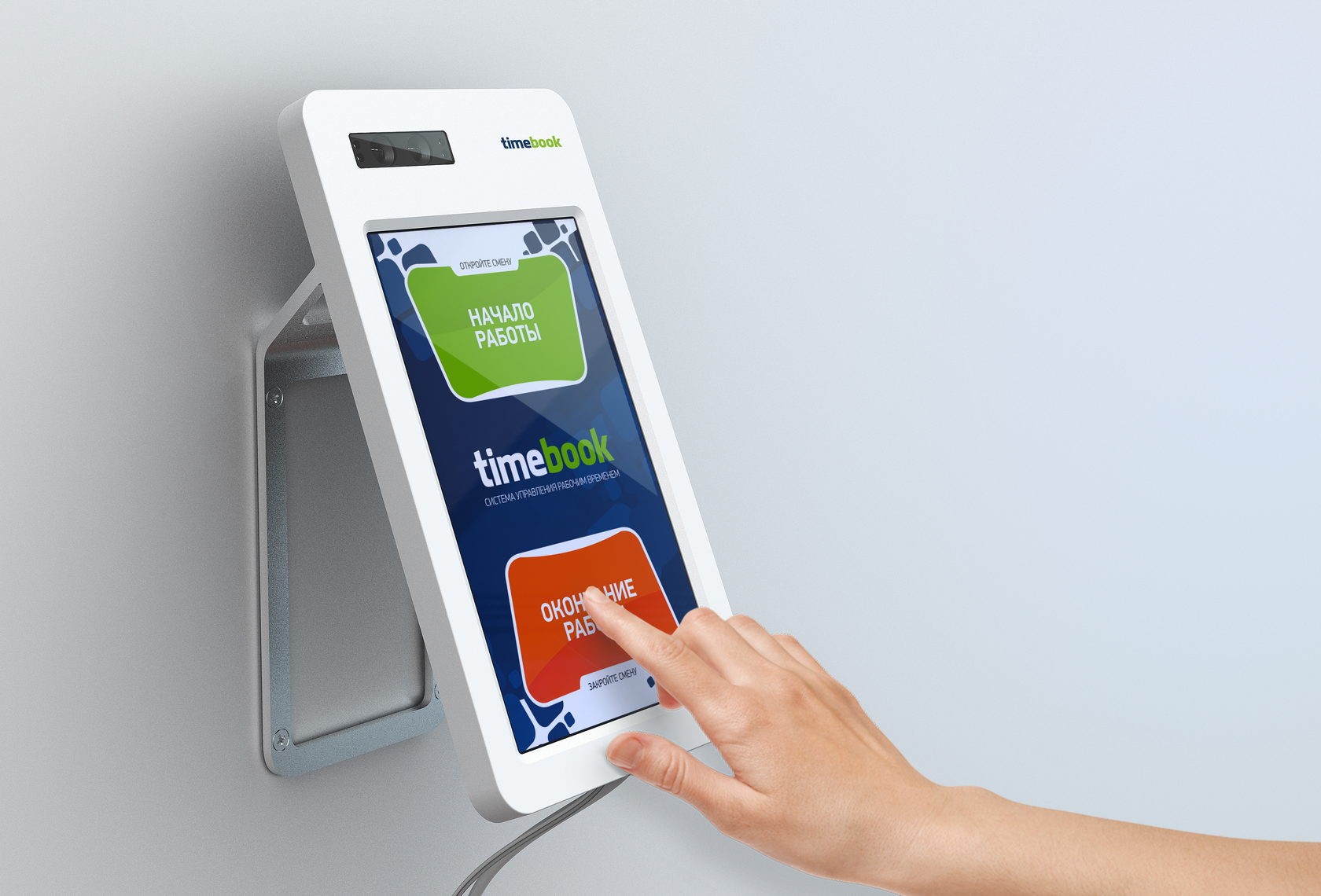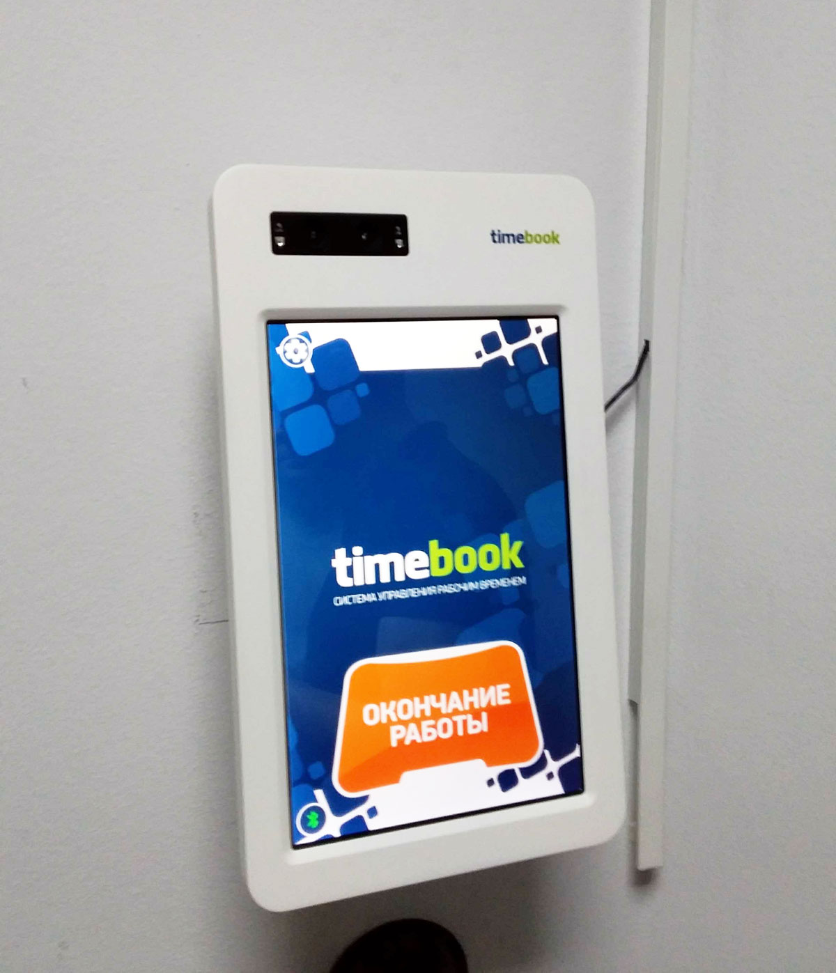 Этот терминал — часть системы управления рабочим временем, его задача — зафиксировать время начала и окончания работы сотрудника. Многие привыкли отмечаться на работе с помощью RFID-карт, которые нужно носить с собой, терминал timebook же опознаёт работников по их лицам.Человек подходит к устройству, прикасается к сенсорному дисплею, терминал «считывает» биометрический шаблон лица, сверяет с базой данных и фиксирует начало или окончание смены.