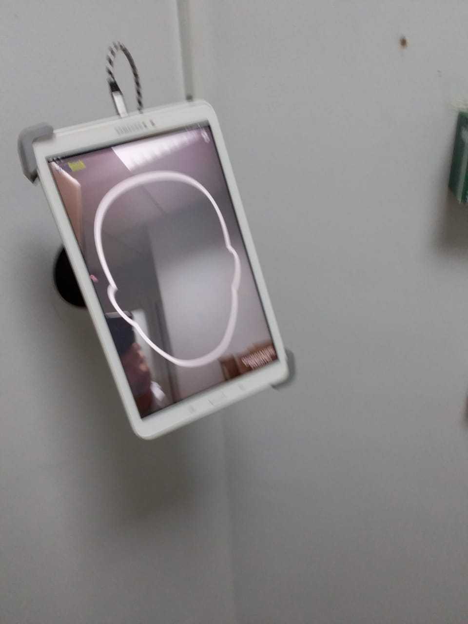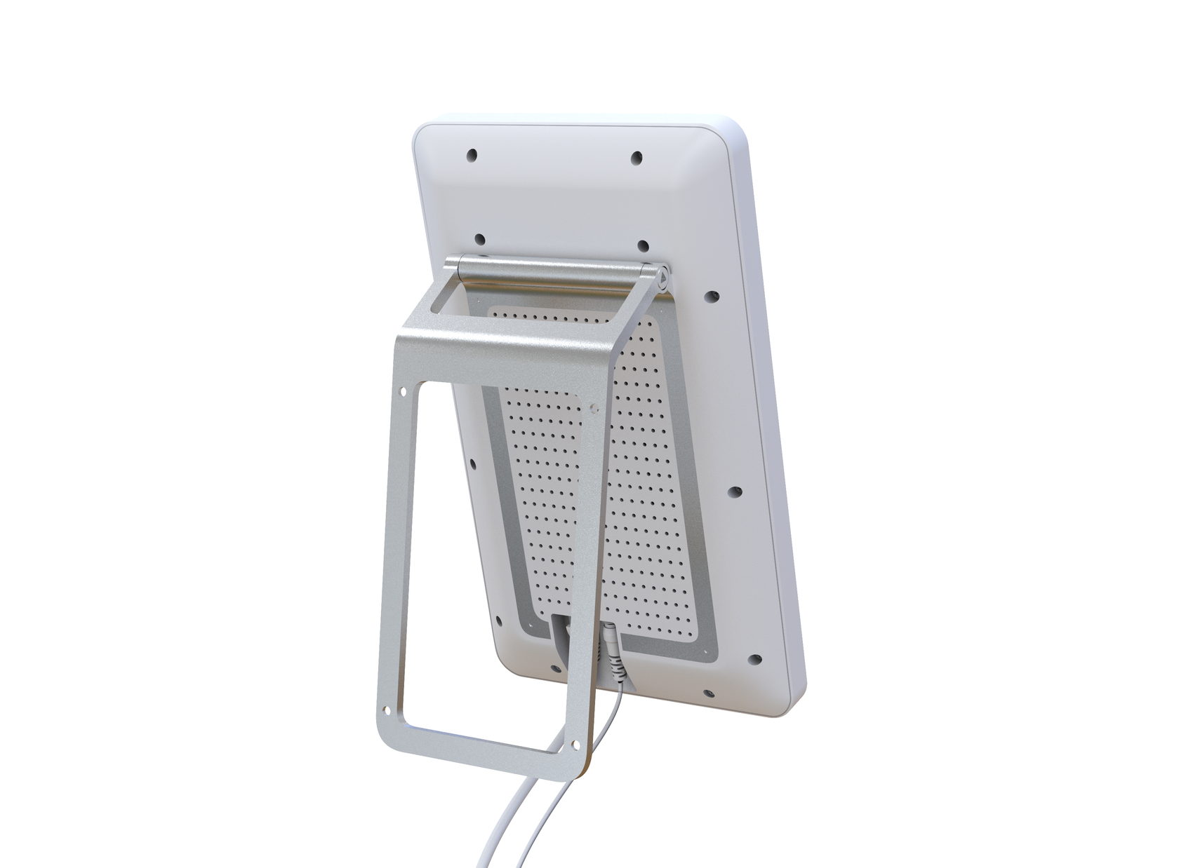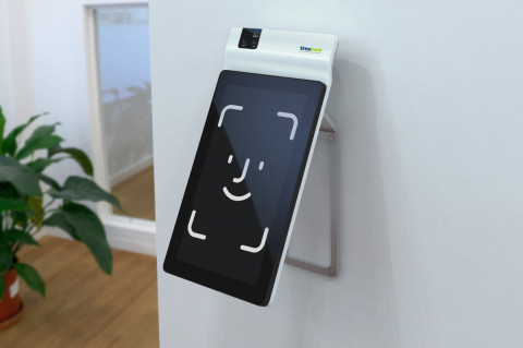 На первый взгляд терминал похож на всем привычный планшет. И действительно — у него точно такие же габариты, как и у десятидюймового tablet. Но этот «планшет» оснащён не обычной, а бинокулярной камерой, и у него есть кронштейн для крепления к стене.