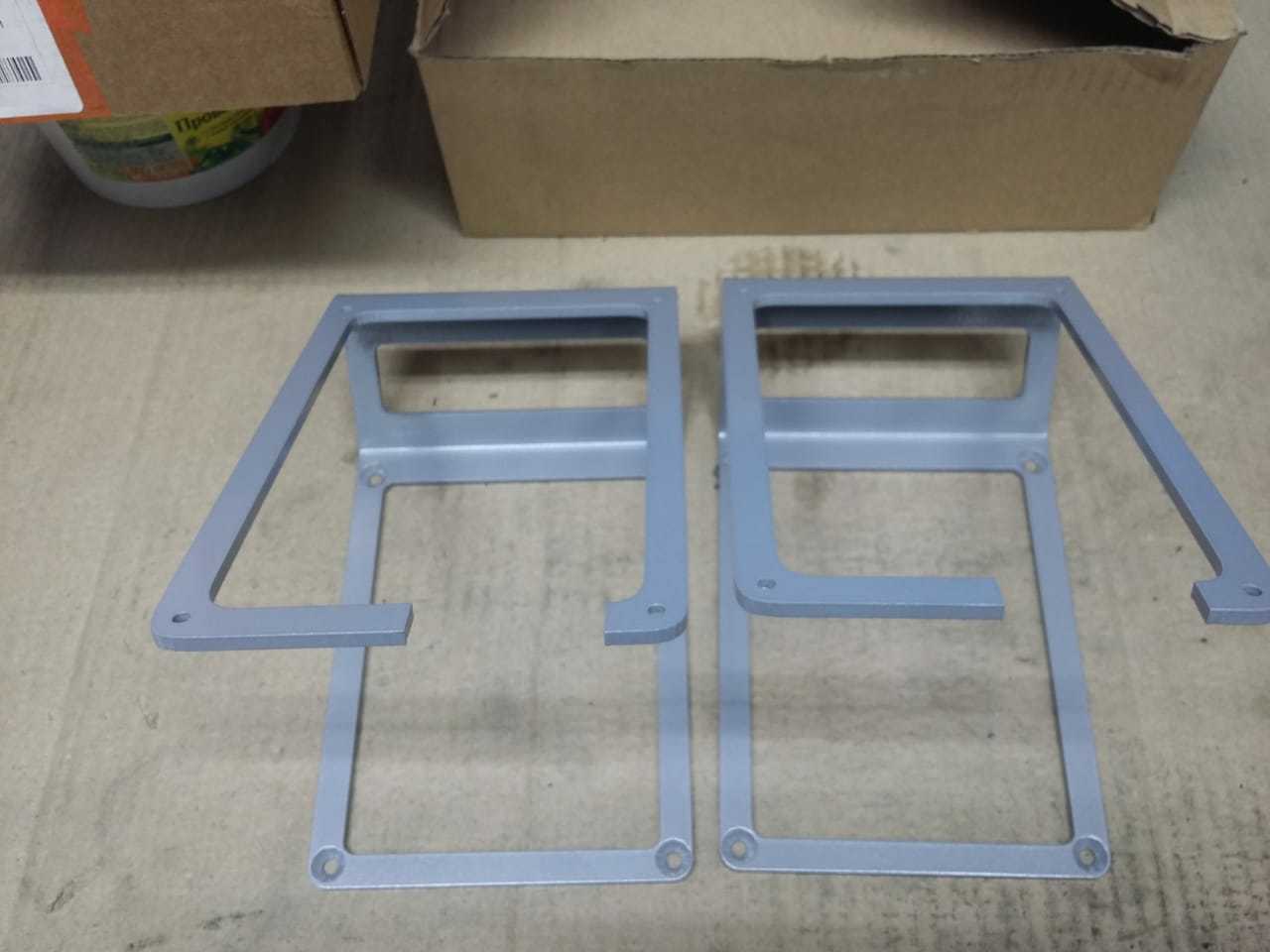 Кронштейны сделали. На выставку, естественно, поедет самый дорогой из них, алюминиевый. А вот и остальные: