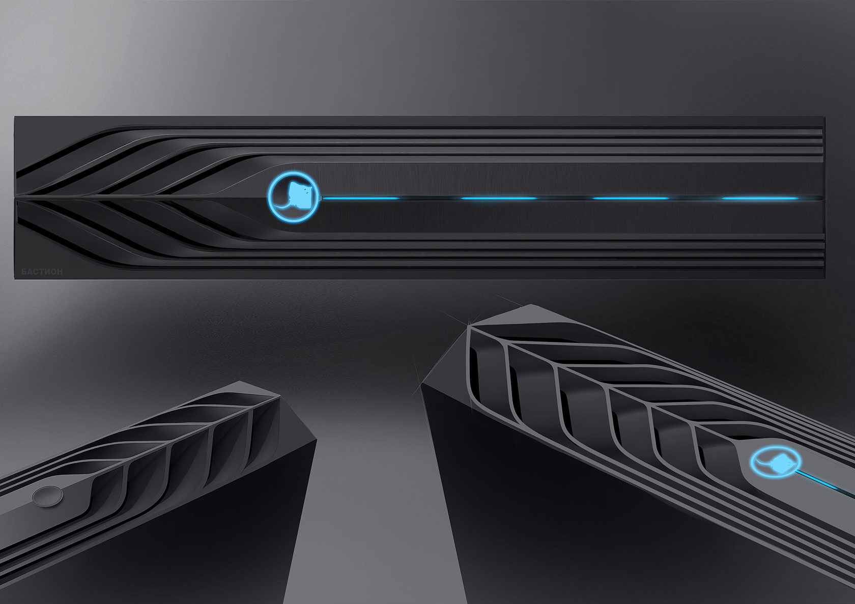 Особые пожелания: дизайн должен быть «динамичным и агрессивным»; можно сделать так, чтобы панель подсвечивалась изнутри; учесть при разработке внешнего вида, что ИБП могут устанавливаться друг на друга и при этом должны выглядеть гармонично.