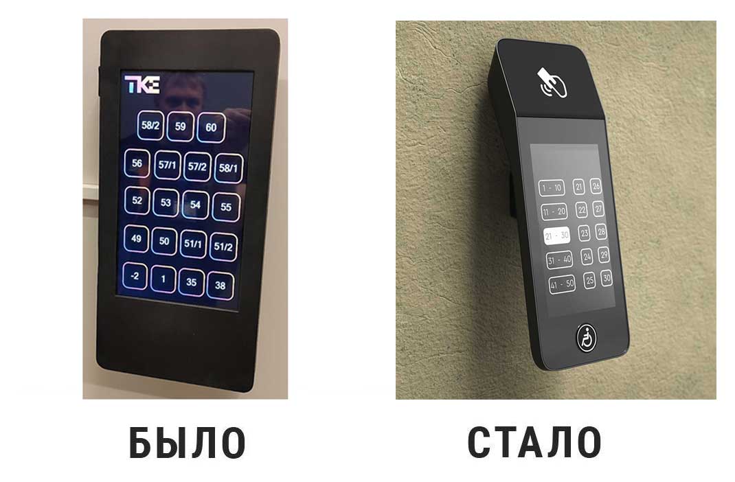 Терминал «умный»: пользователю достаточно нажать кнопку этажа, на который он хочет подняться, а на дисплее вызывной панели появляется номер свободного лифта.