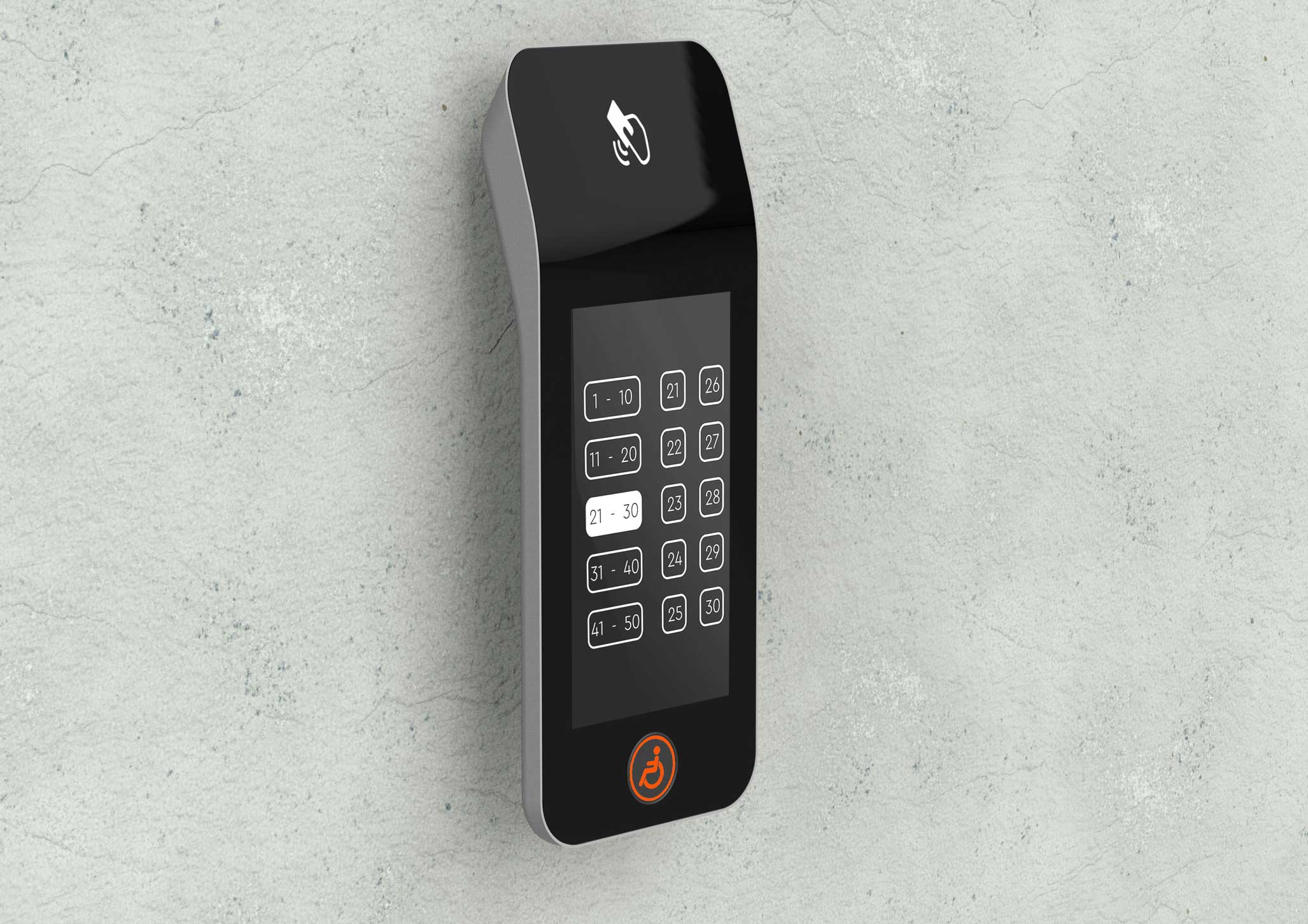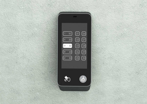 | Что нужно сделать? Задачи | 1. Терминал состоит из корпуса с отдельным кронштейном для крепления к стене (чтобы панель можно было снимать без разборки), сенсорного дисплея, платы управления, динамика для воспроизведения звука, считывателя СКУД и кнопки с пиктограммой «инвалид». 2. На лицевой панели есть отверстия для экрана; выхода звука динамиков, окно для считывателя СКУД. На боковой или нижней панели — слот SD-карты с доступом для обновления ПО. 3. Корпус должен собираться на винтах. Это нужно для легкого монтажа и дальнейшего обслуживания. 4. Универсальный дизайн, который сочетается с разной стилистикой отделки лифтовых холлов. Терминал должен одинаково хорошо смотреться и в премиум-апартаментах, и в обычном бизнес-центре. 5. Терминал нужно сделать удобным и для пользователей, и для монтажников. 6. Предпочтительны матовые текстуры и монохромная цветовая гамма, например, черный, серый и белый. Небольшие яркие вставки не возбраняются. 7. Есть особые требования по размерам и дизайну к кнопке для маломобильных групп населения |