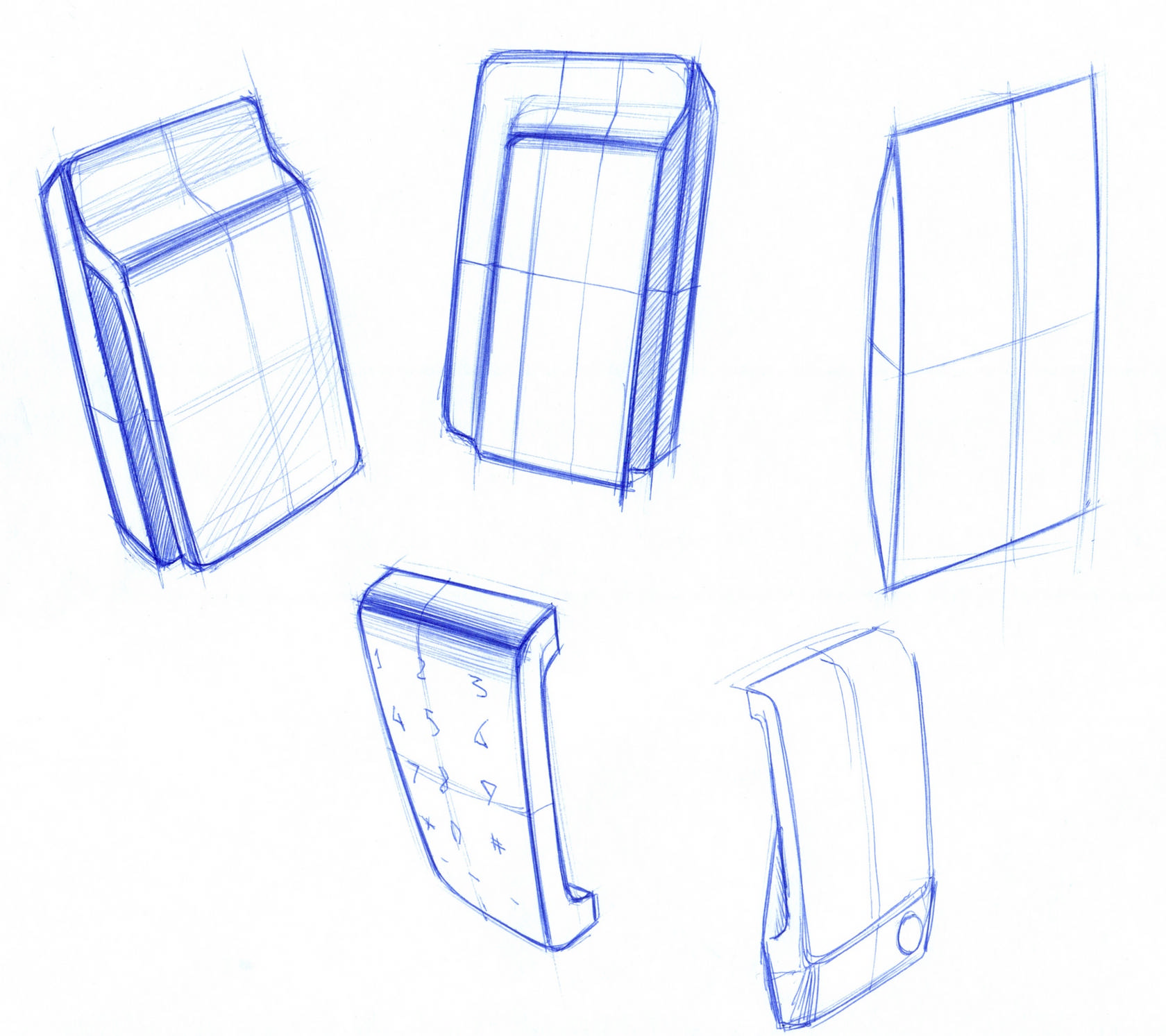 Каждый проект средней сложности требует несколько десятков, а то и сотен идей в виде черновых эскизов. Если в продукте очень важен непосредственный контакт с человеком, его руками, например, то этап эскизирования становится очень важным, кропотливым и небыстрым. Иногда простые идеи требуют проверку жизнью или простыми габаритными макетами. Об этом можно почитать тут, ну а пока ещё примеры эскизов: