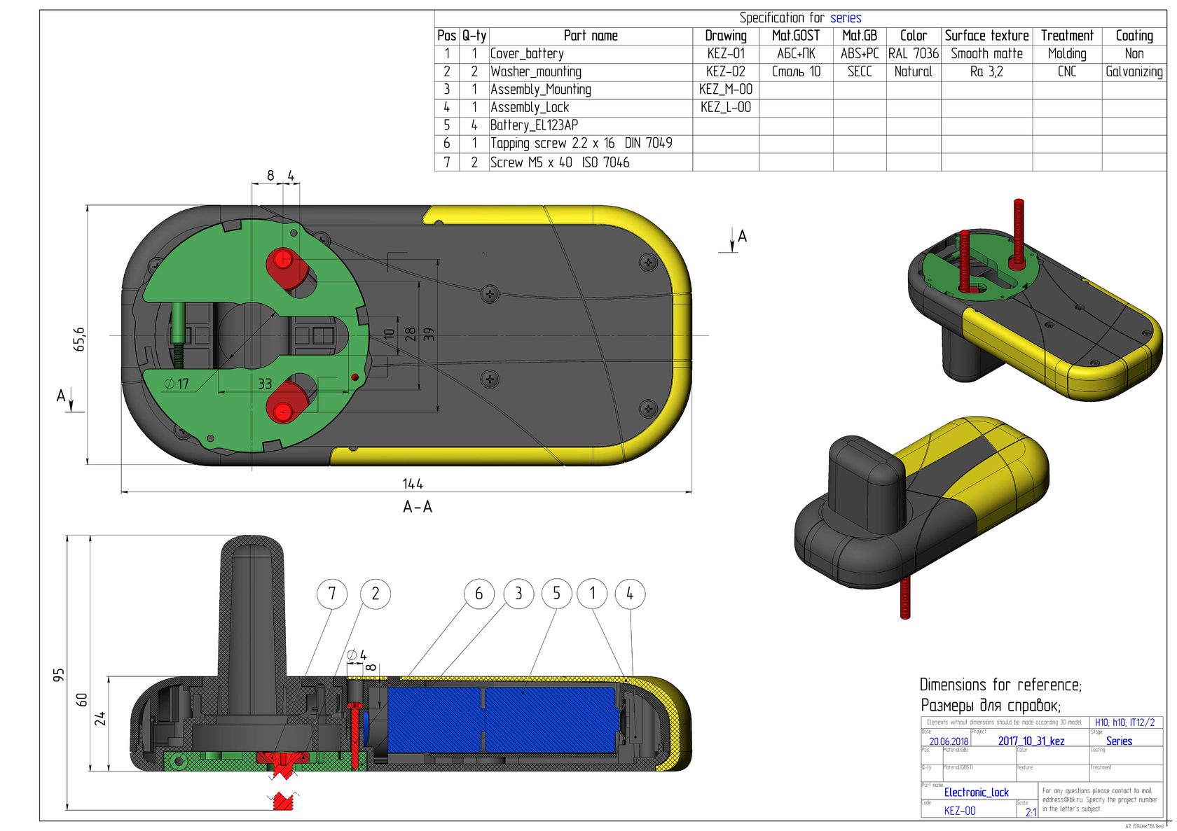 Дизайн электронного дверного замка у заказчика уже готов. Нам оставалось лишь «отехнологичить» его — разработать конструкцию корпуса и механической части и при этом учесть такие требования, как серьёзный срок наработки на отказ (замок не должен ломаться как минимум в течение гарантии, а это три года), универсальность установки (горизонтально или вертикально) и использование корпуса с различными типами замков.